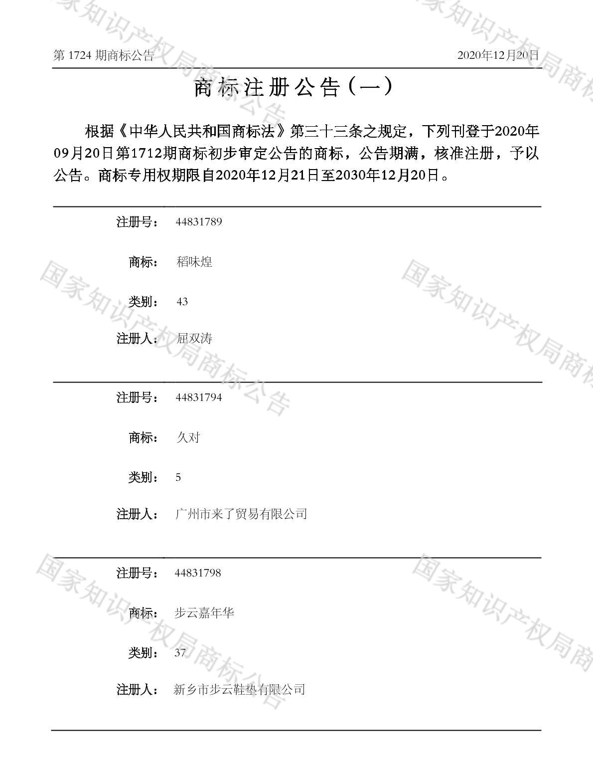 有效期限:2030-12-20 组合类型:中文注册号:44831789