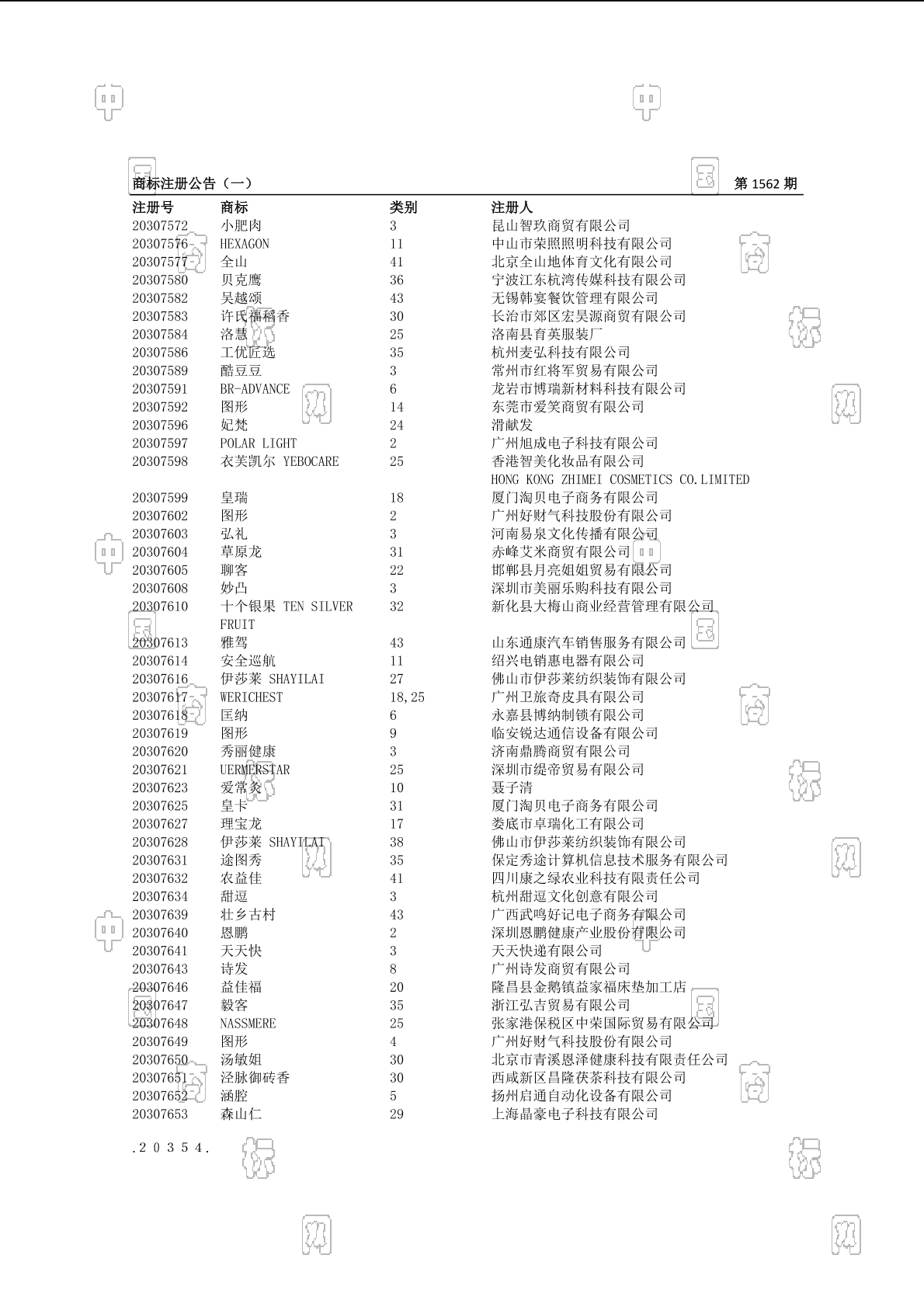 有效期限:2027-08-06 组合类型:中文注册号:20307652