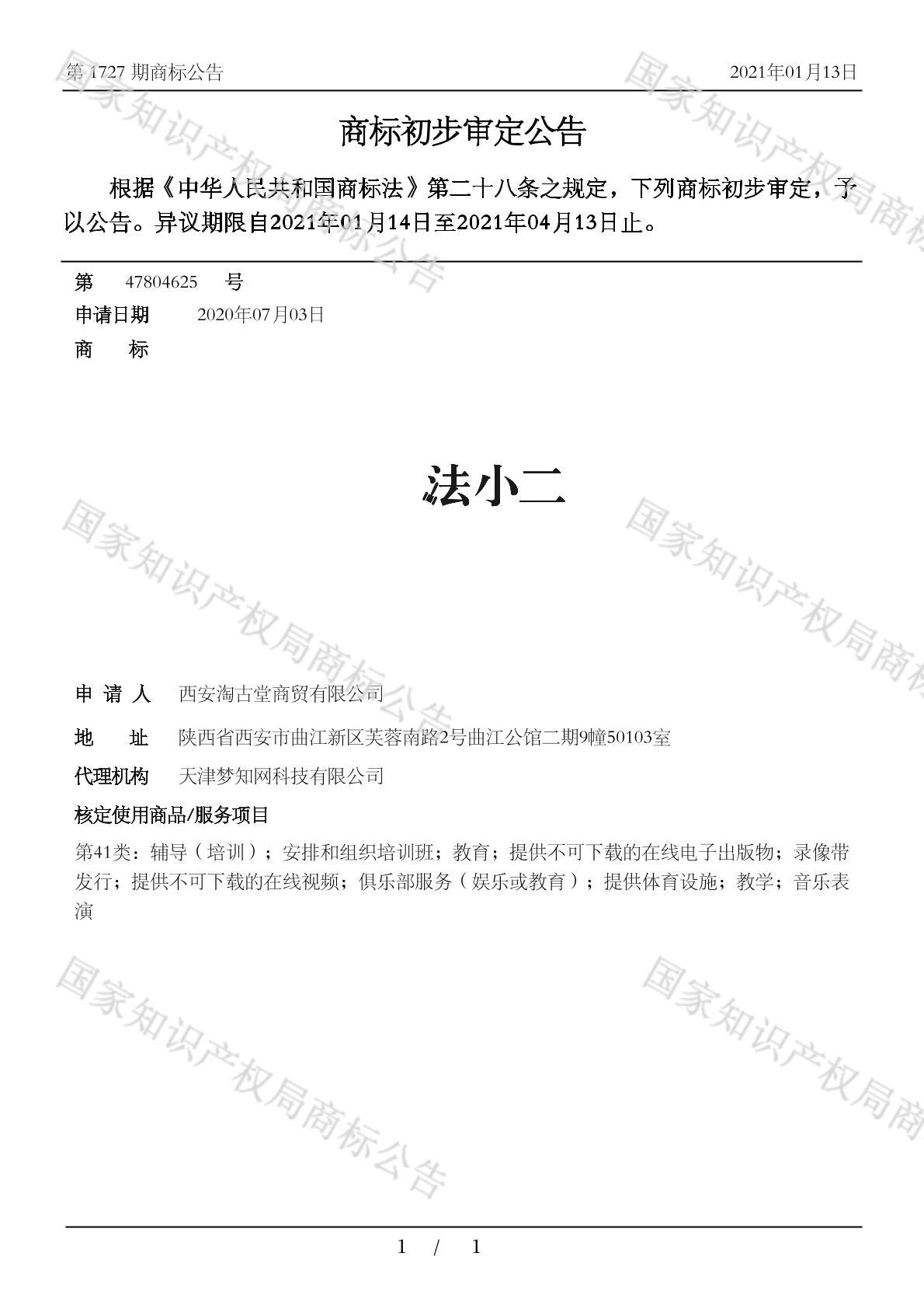有效期限:2031-04-13 组合类型:中文注册号:47804625