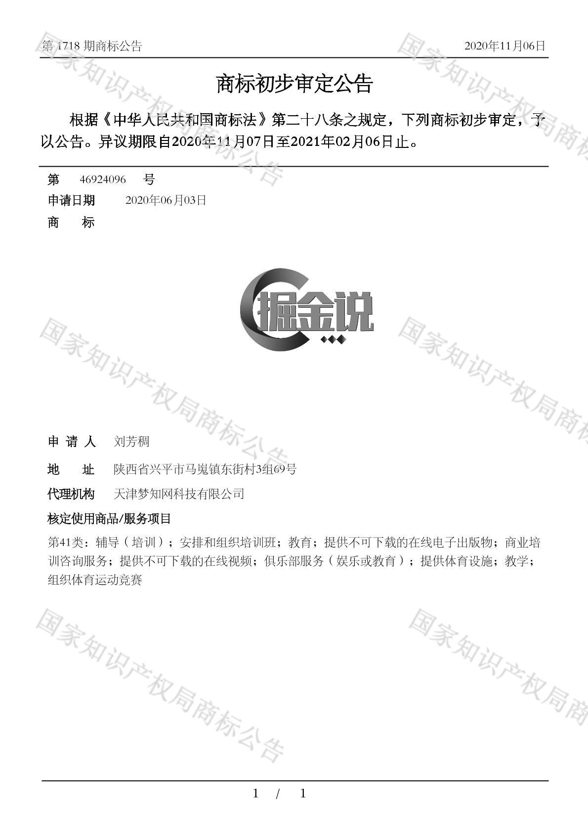 初审公告日期:2020-11-06