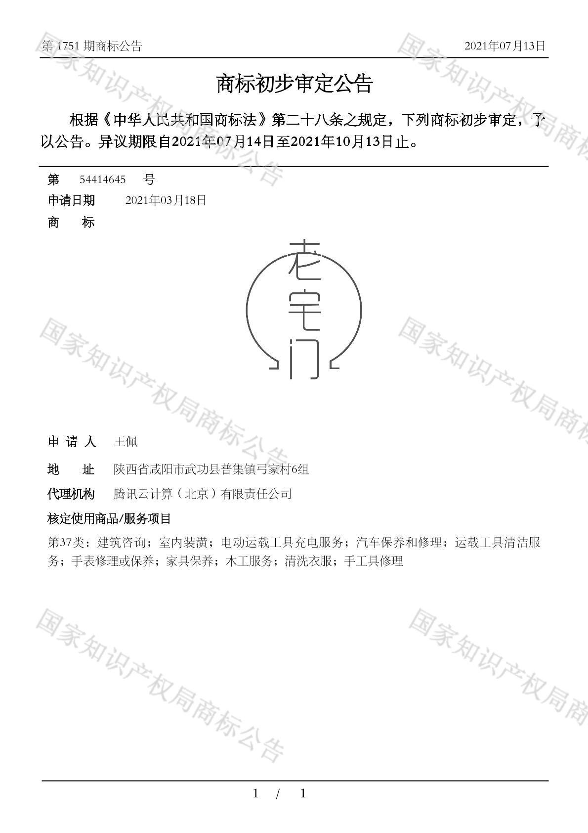 有效期限:2031-10-13 组合类型:中文注册号:54414645
