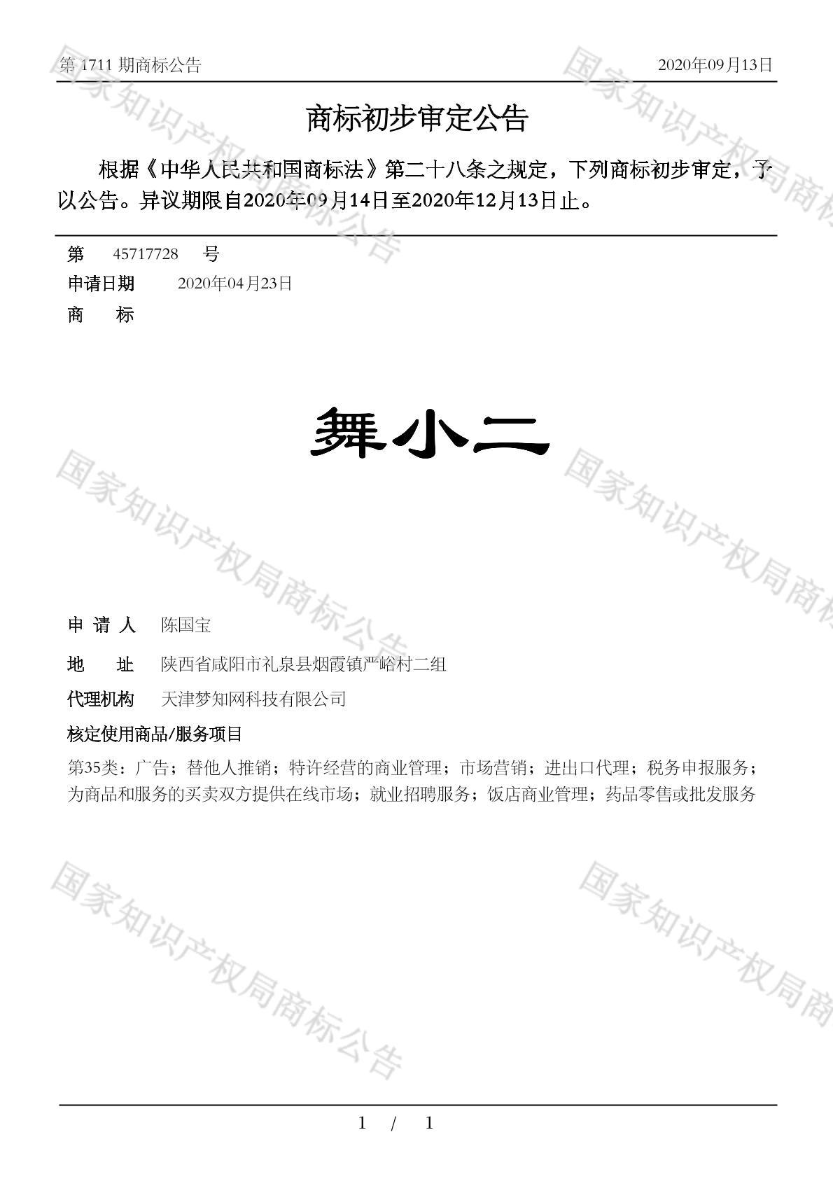 初审公告期号:1711