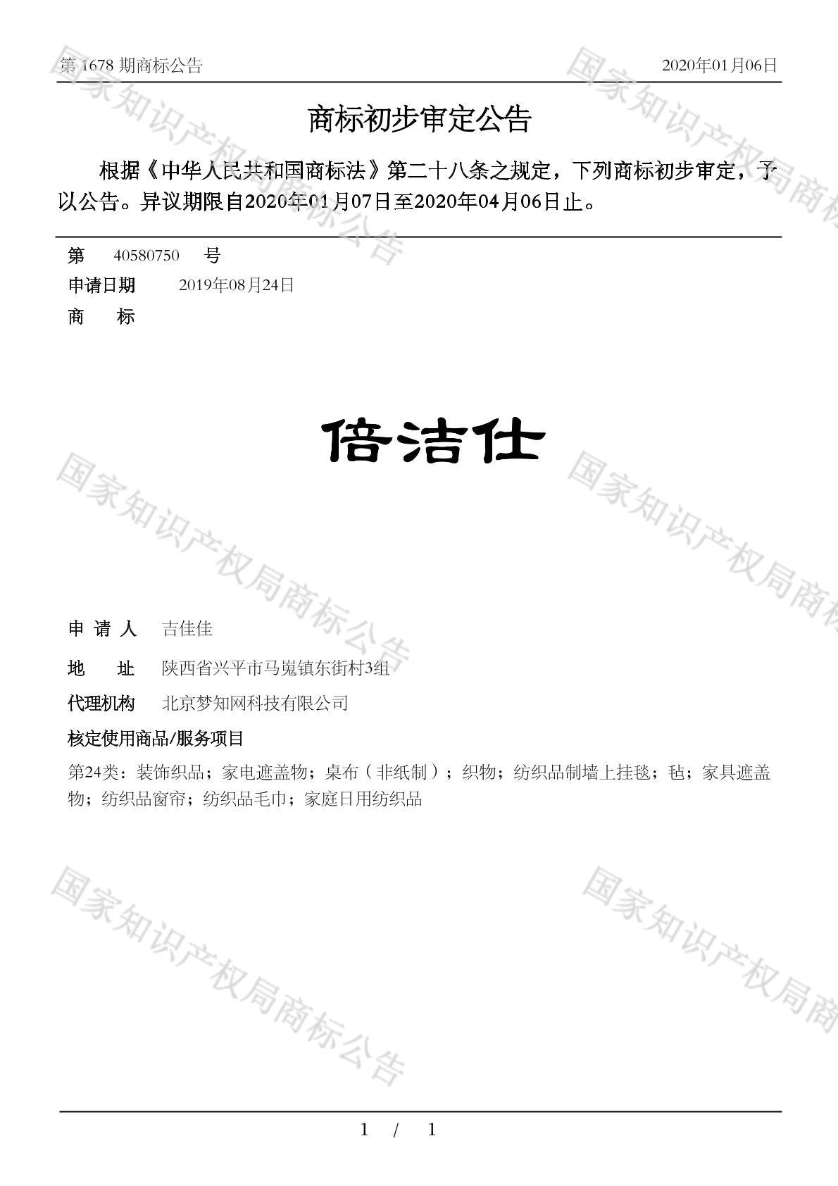 您当前位置:首页商标转让24类商标倍洁仕
