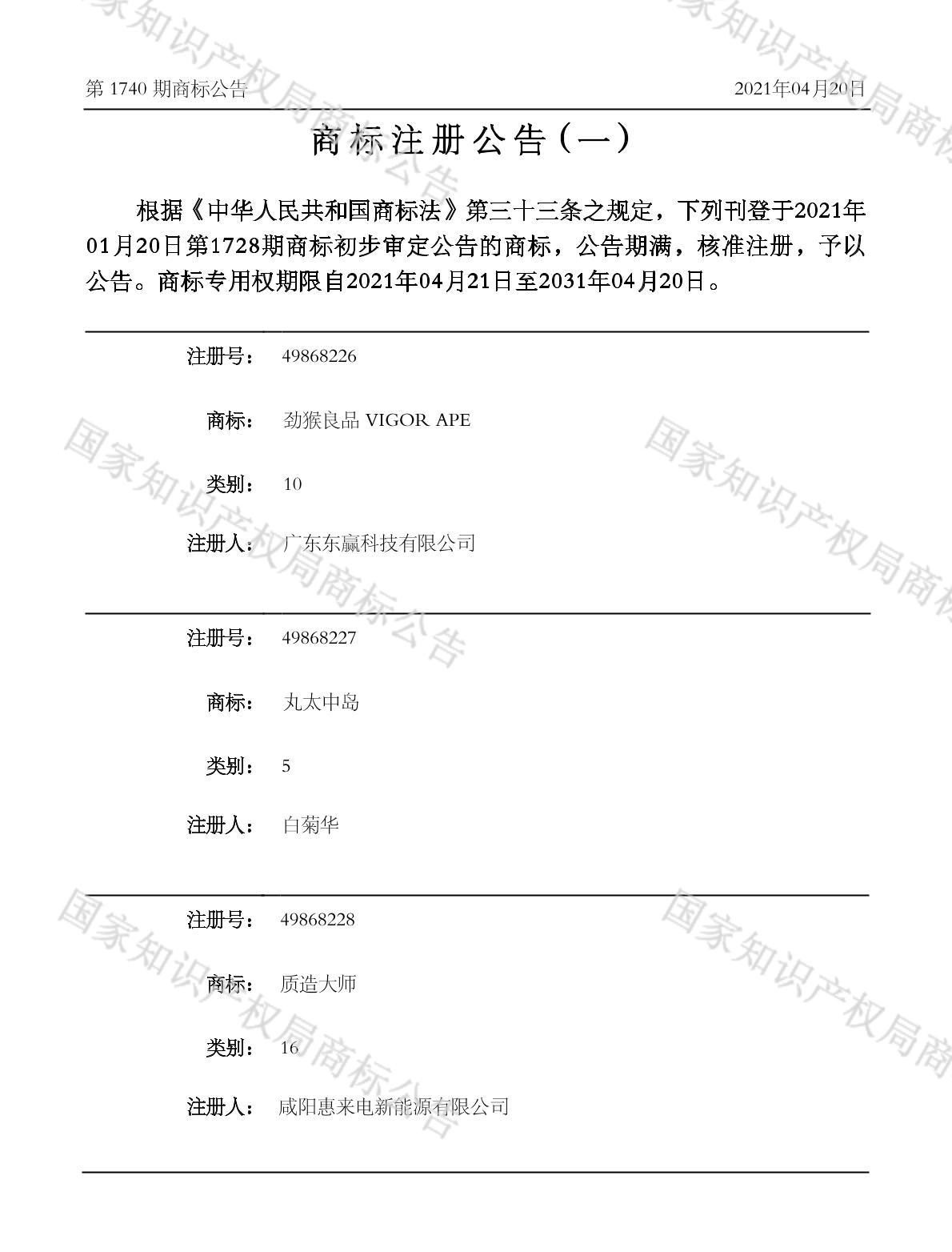注册公告期号:1740