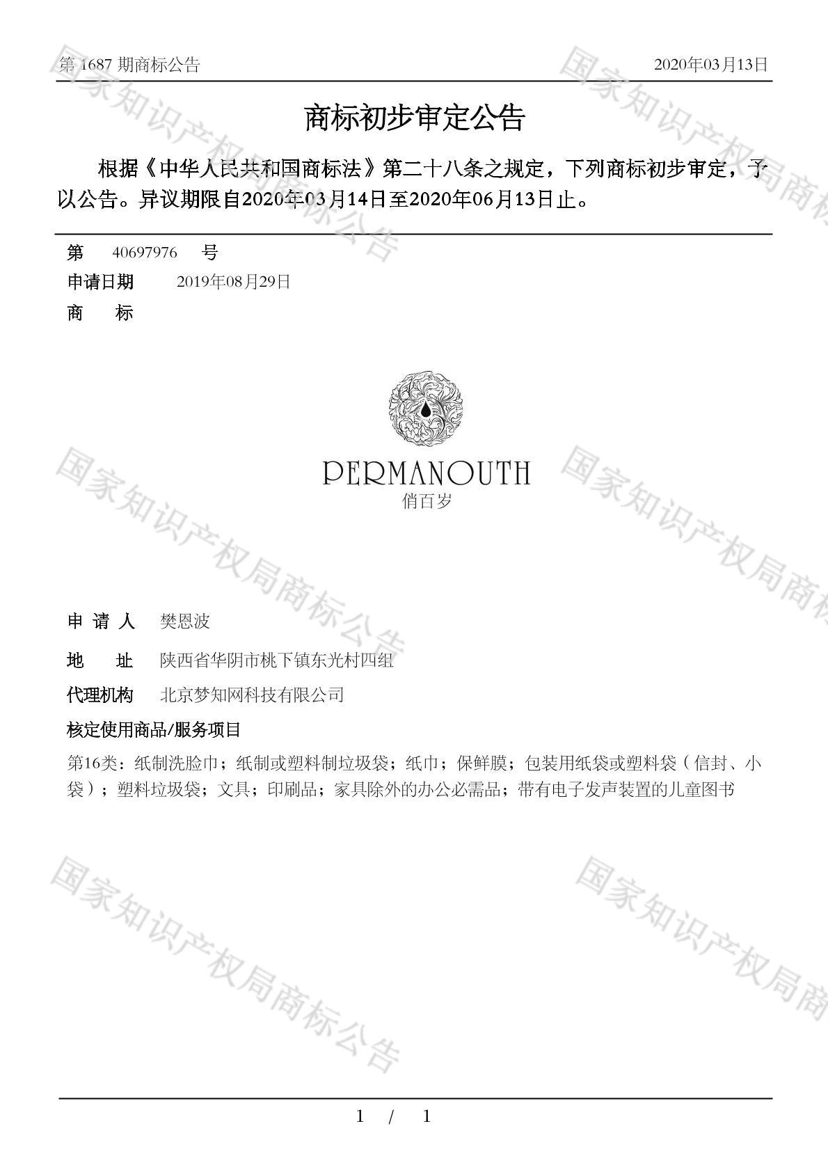 您当前位置:首页商标转让16类商标俏百岁 PERMANOUTH