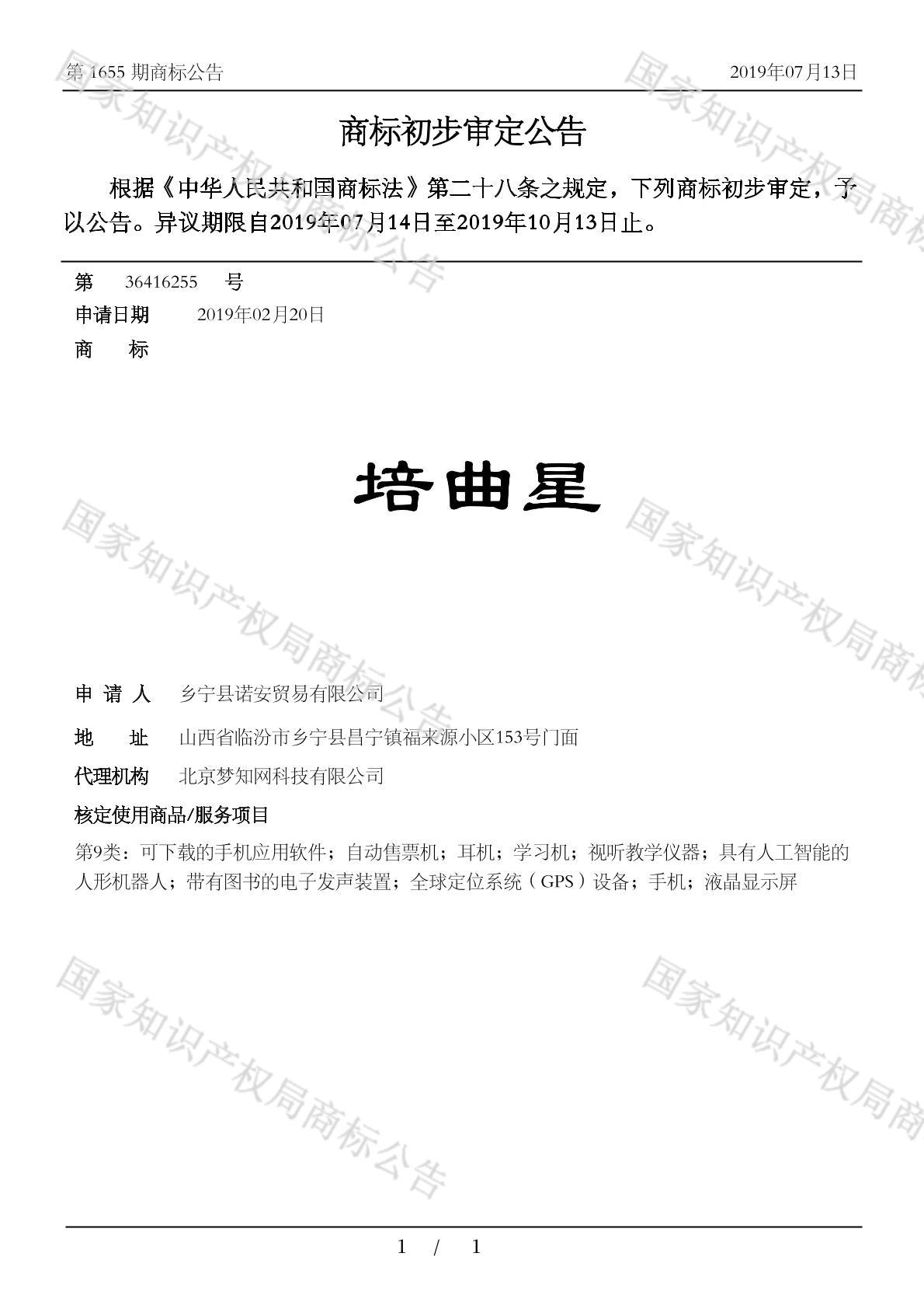有效期限:2029-10-13 组合类型:中文注册号:36416255