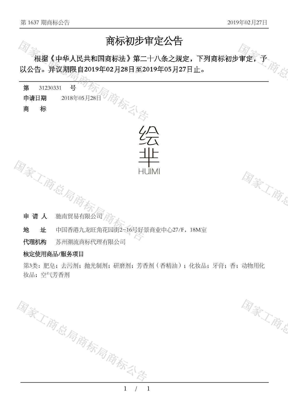 有效期限:2029-05-27 组合类型:中文注册号:31230331