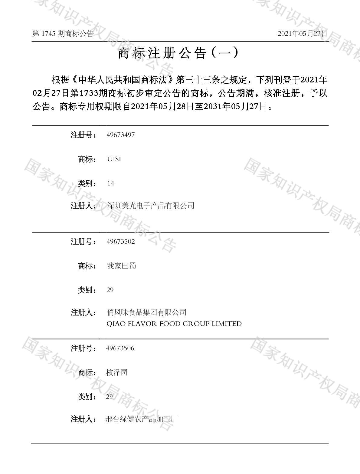 注册公告期号:1745