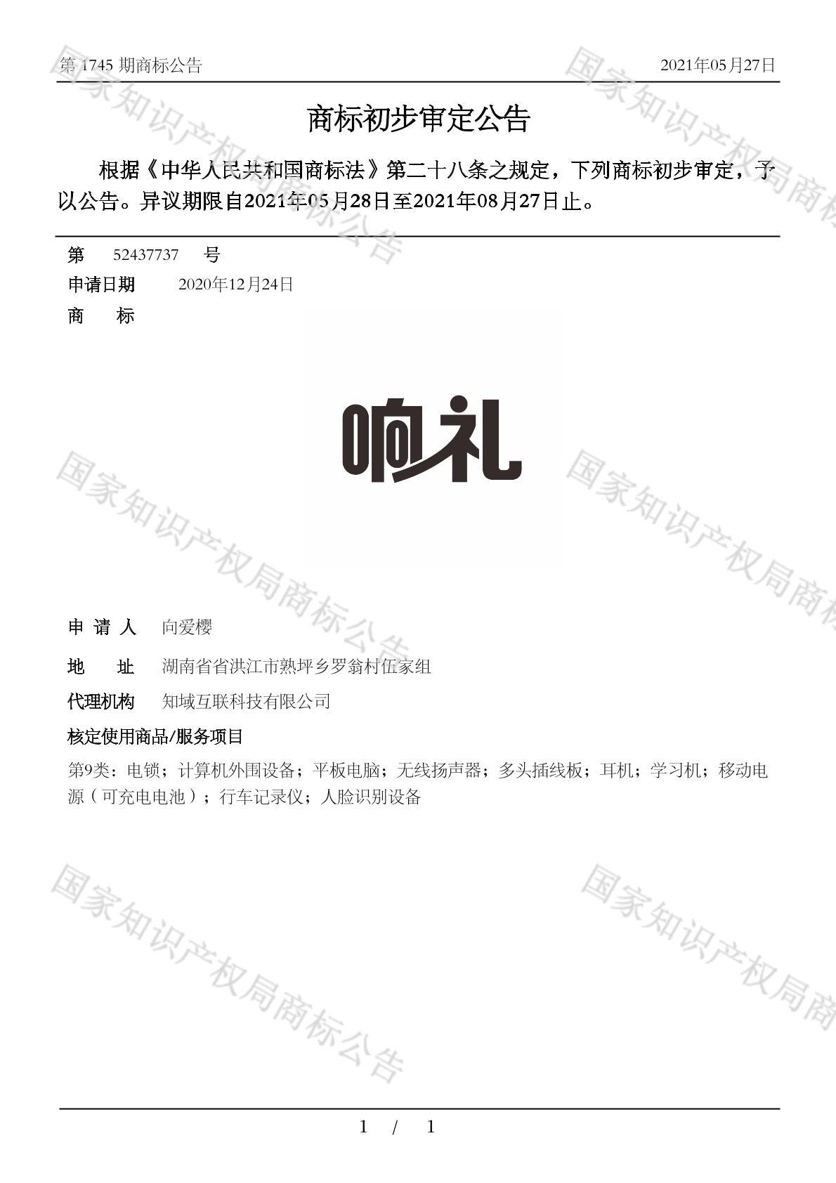 有效期限:2031-08-27 组合类型:中文注册号:52437737