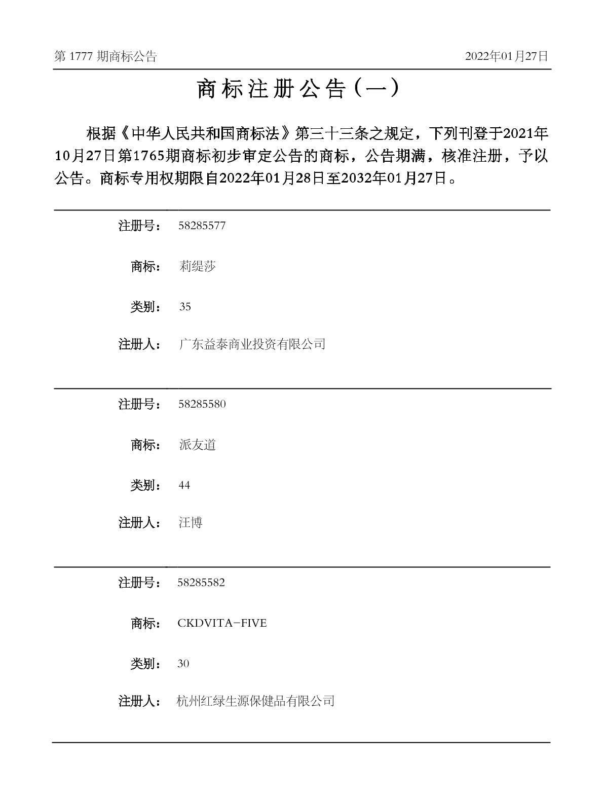 注册公告期号:1777