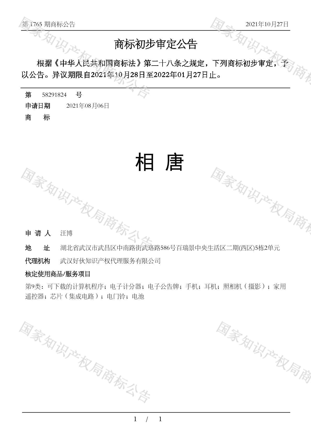 有效期限:2032-01-27 组合类型:中文注册号:58291824
