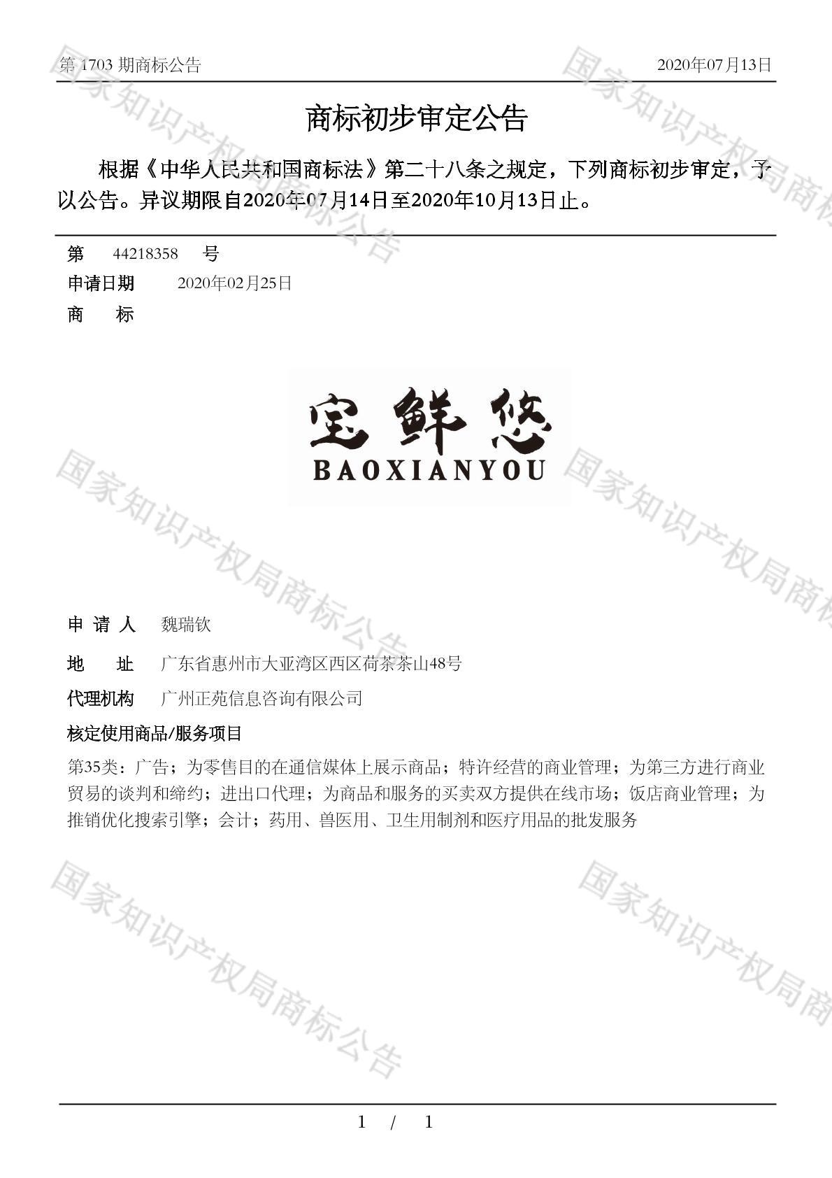 有效期限:2030-10-13 组合类型:中文注册号:44218358