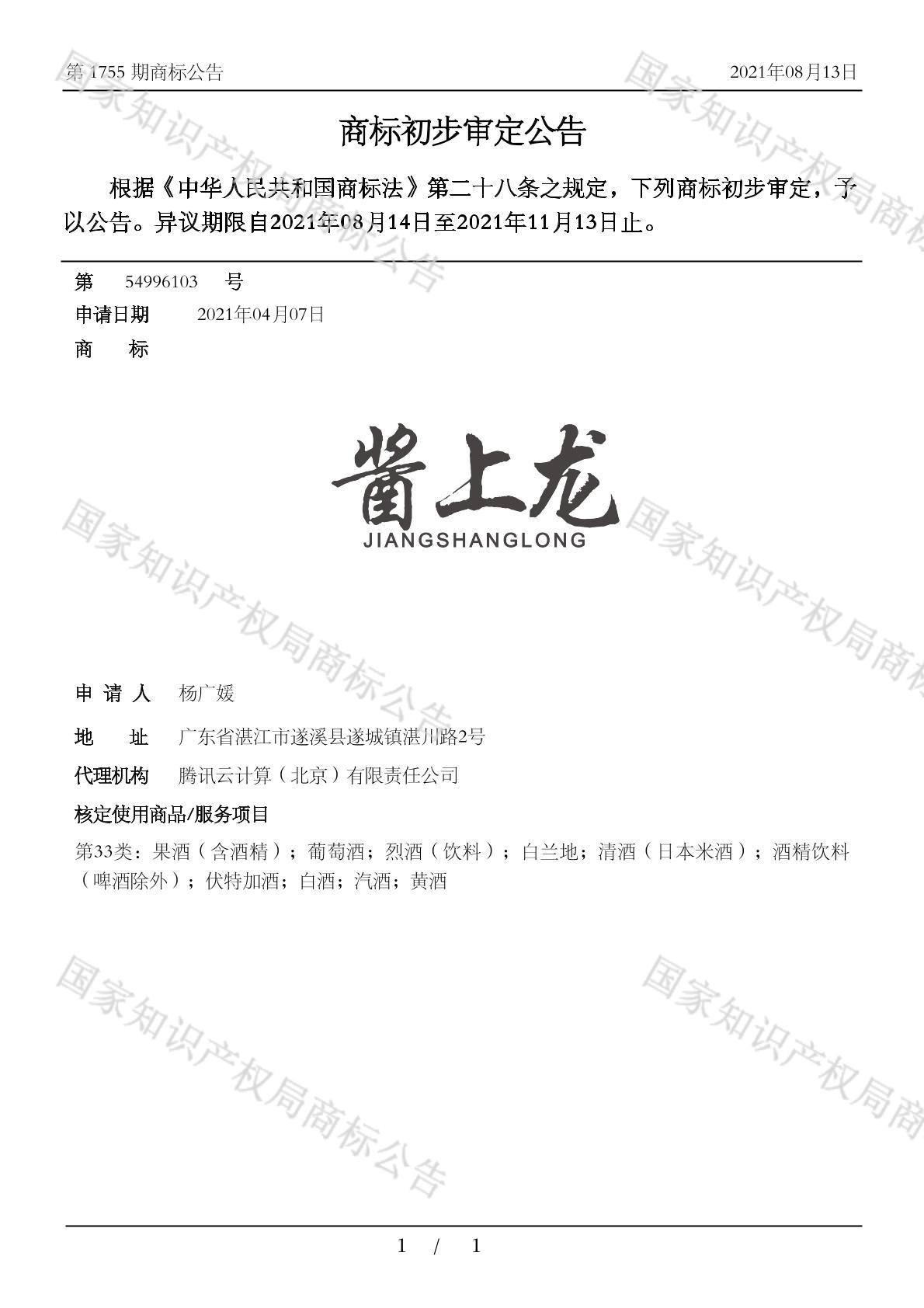 有效期限:2031-11-13 组合类型:中文注册号:54996103