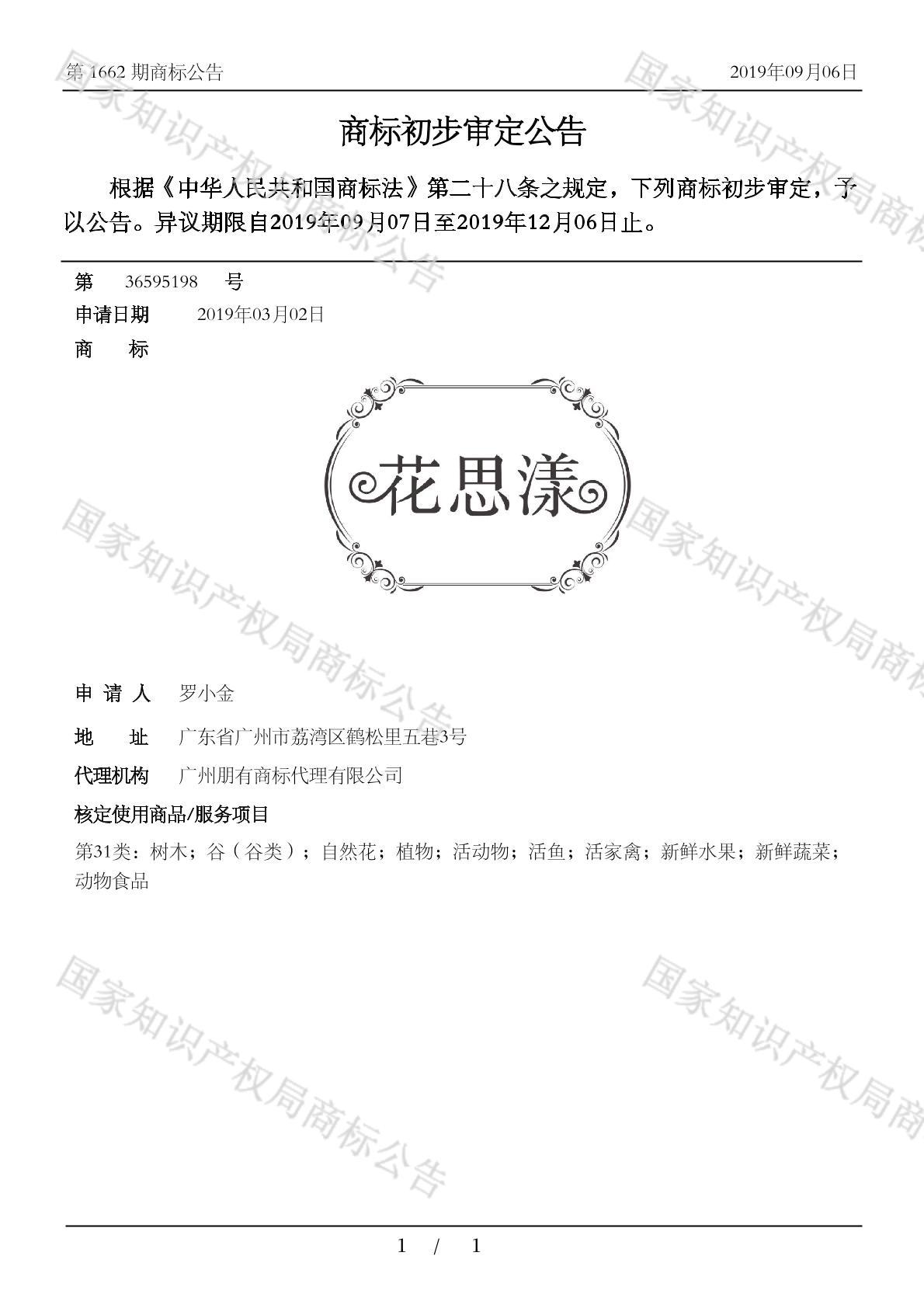 您当前位置:首页商标转让31类商标花思漾