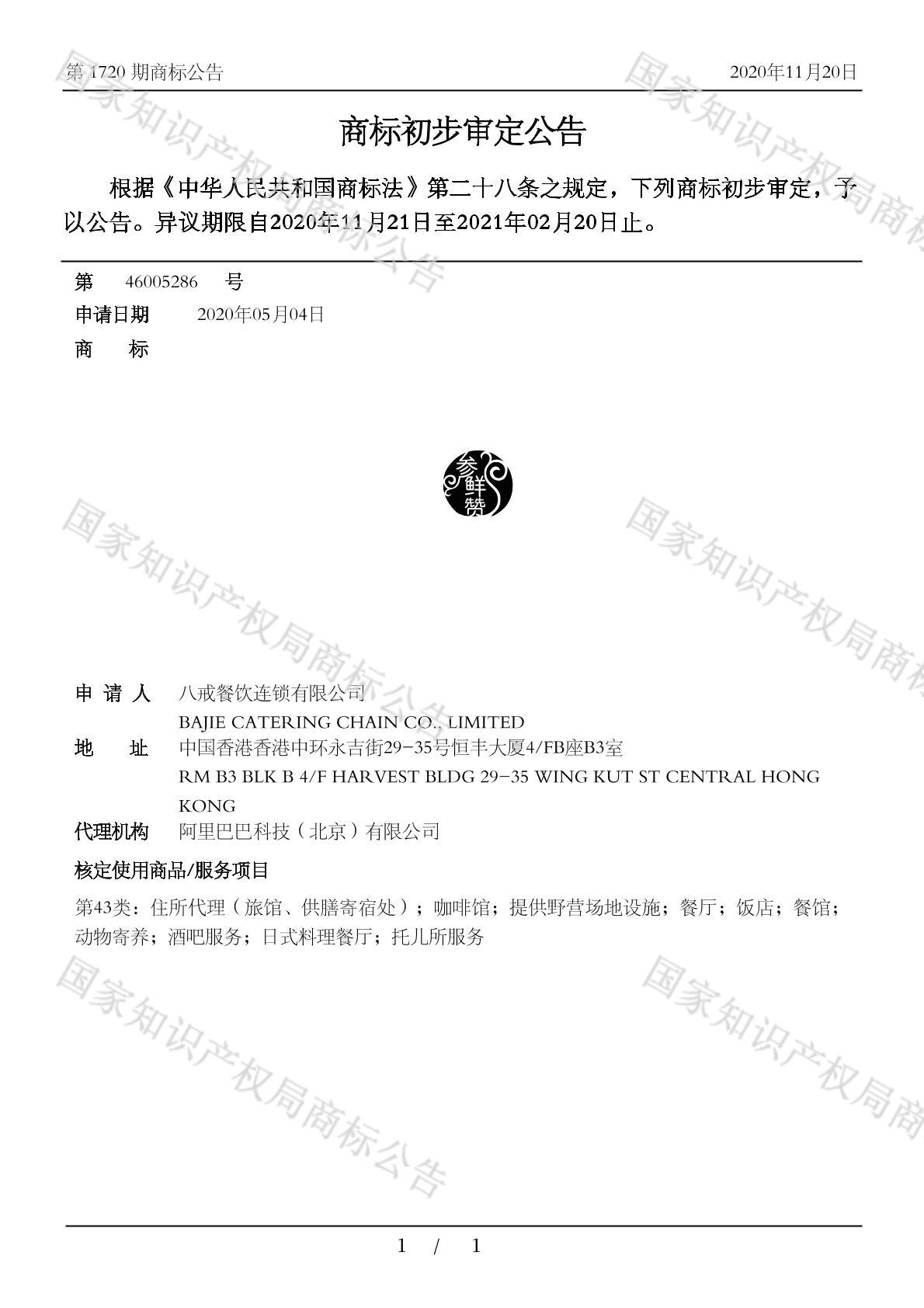 初审公告期号:1720