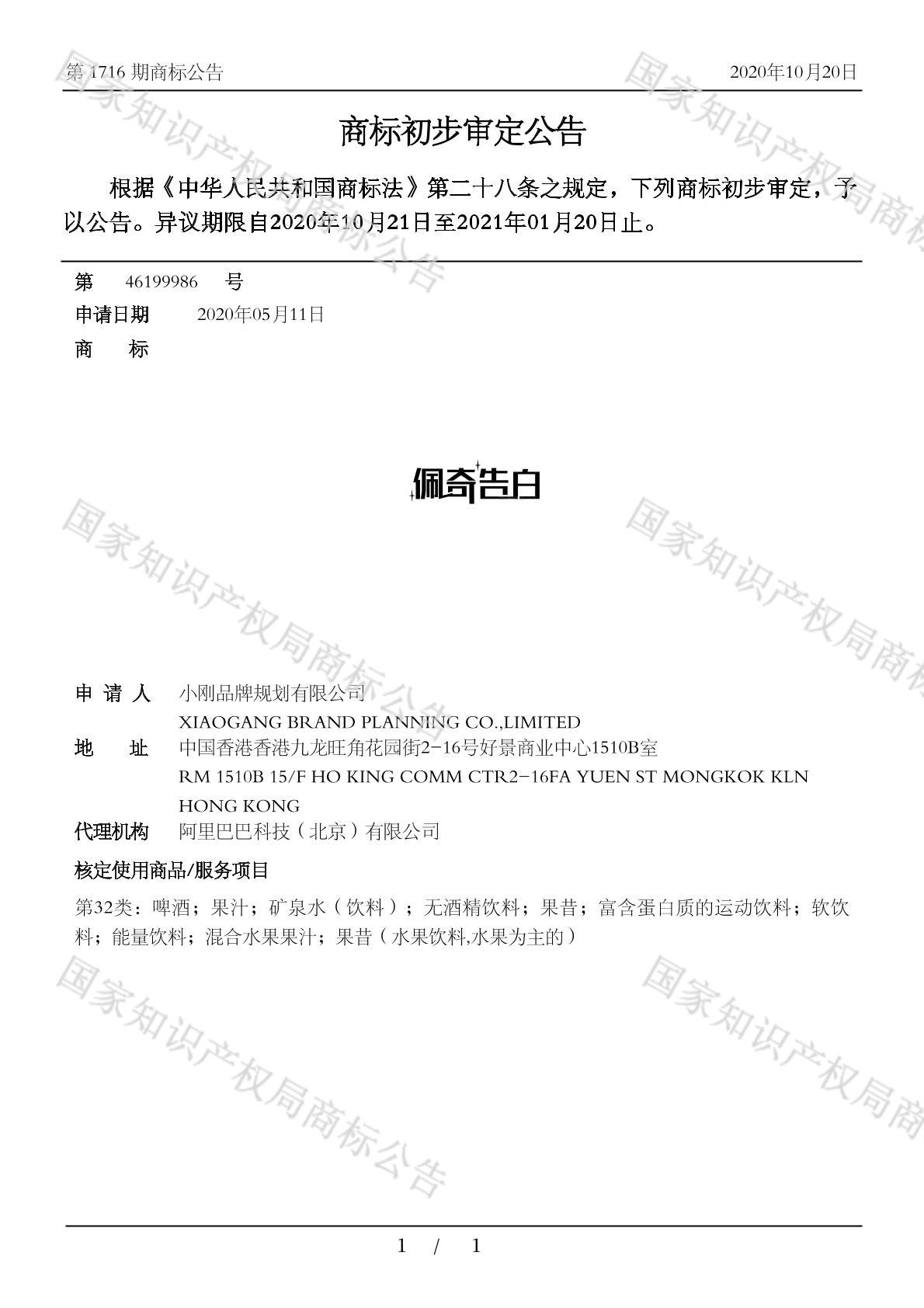 初审公告日期:2020-10-20