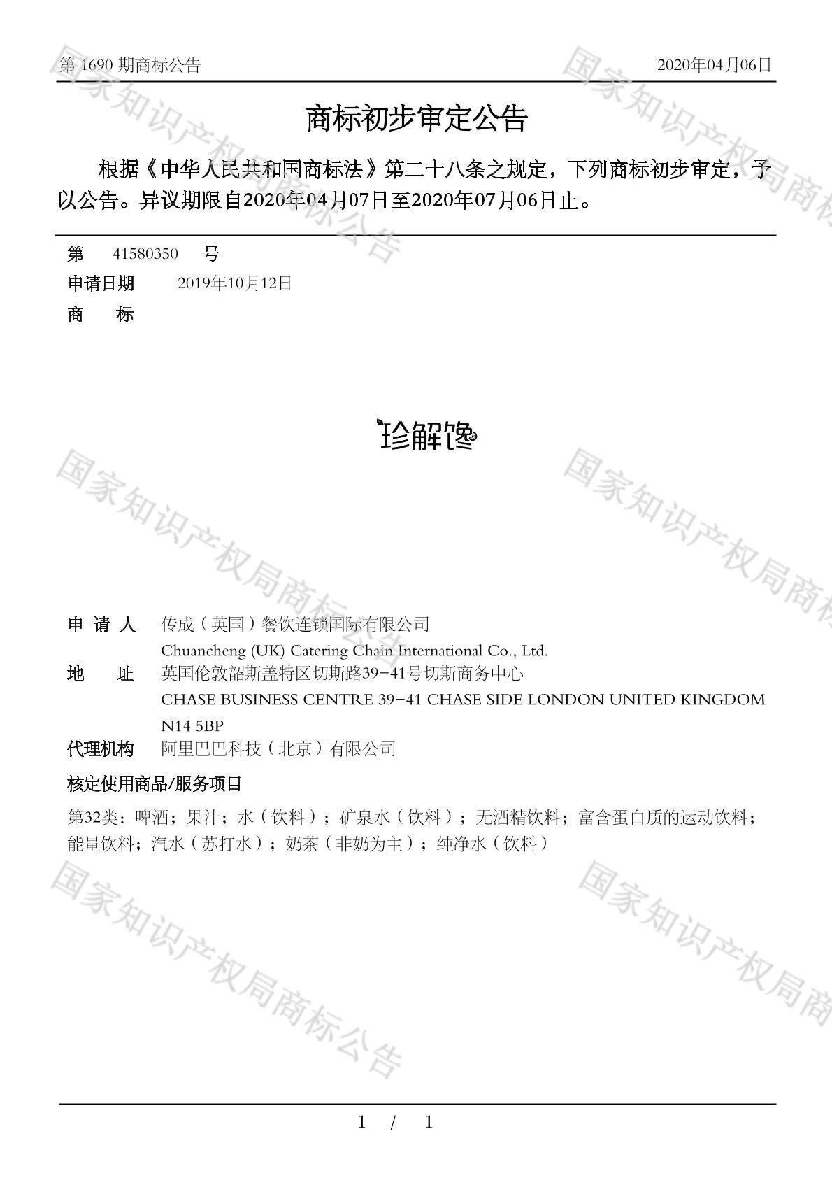 有效期限:2030-07-06 组合类型:中文注册号:41580350