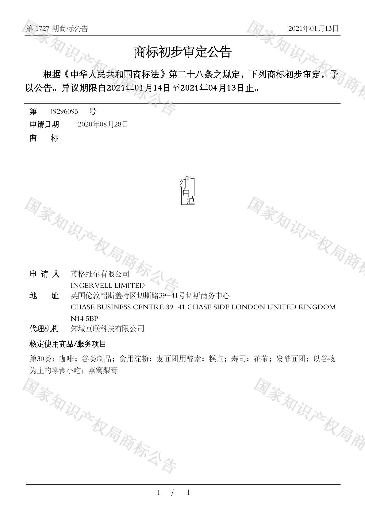 有效期限:2031-04-13 组合类型:中文注册号:49296095