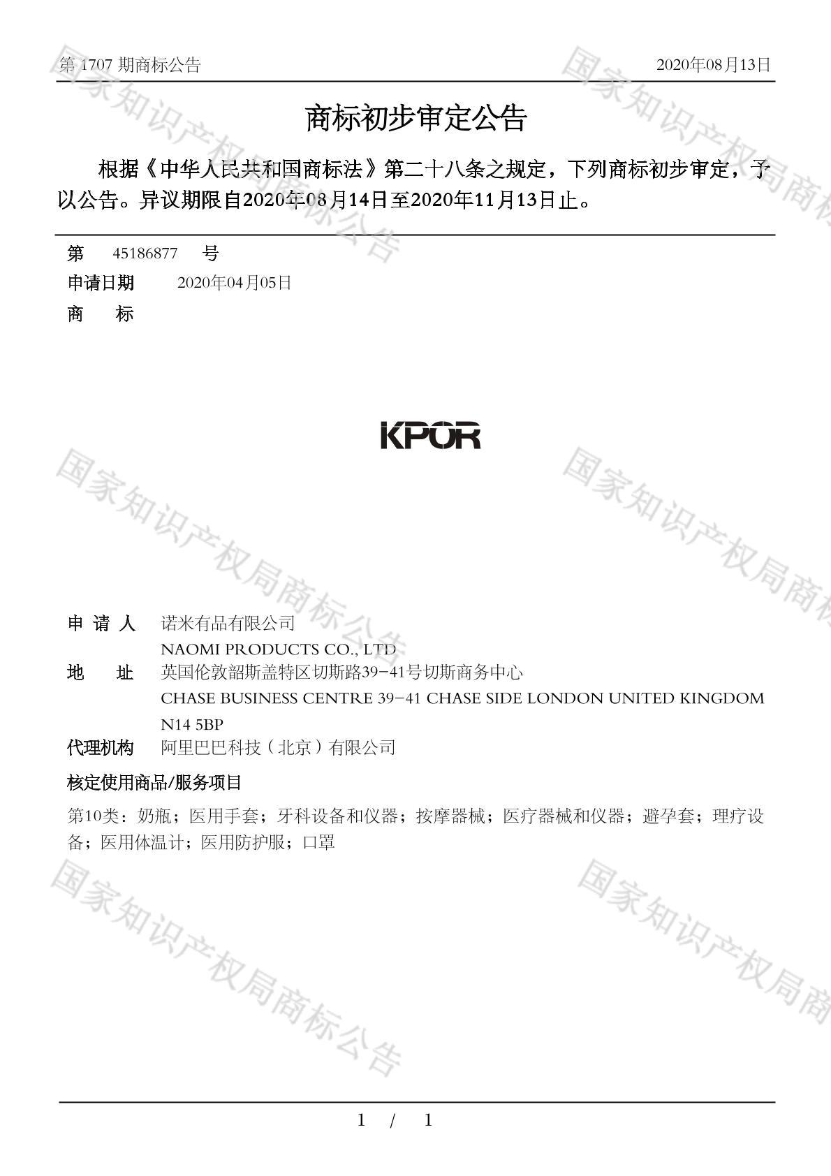 有效期限:2030-11-13 组合类型:中文注册号:45186877