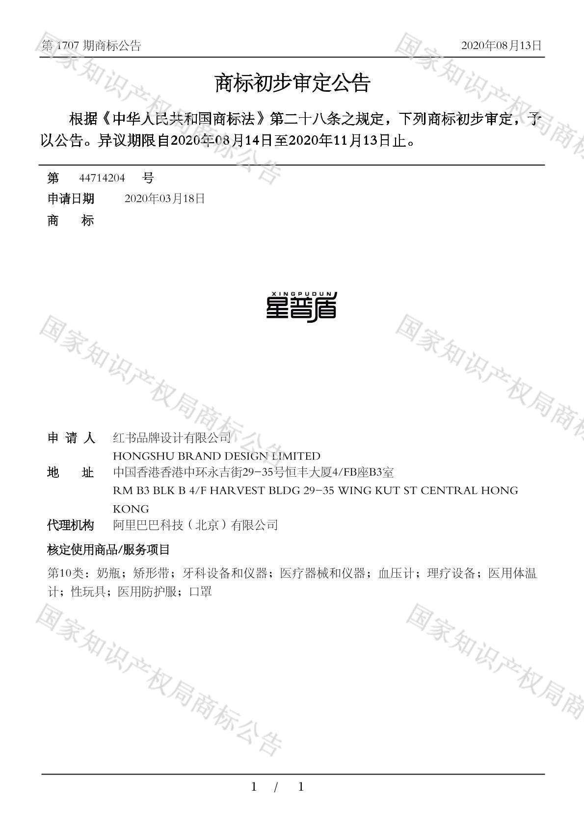 有效期限:2030-11-13 组合类型:中文注册号:44714204
