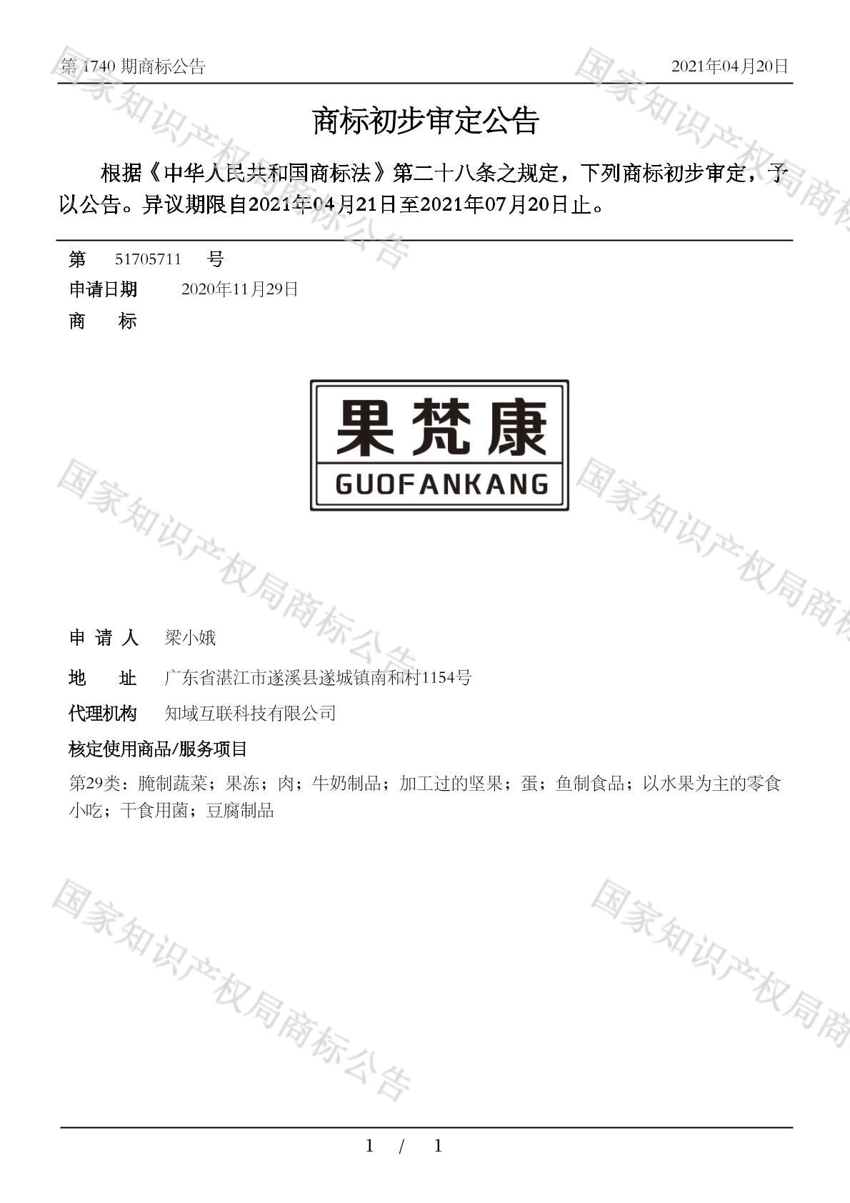 您当前位置:首页商标转让29类商标果梵康