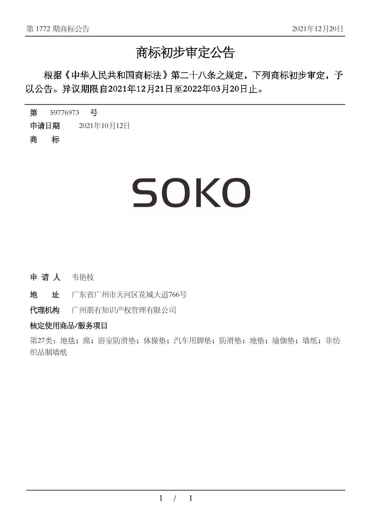 您当前位置:首页商标转让27类商标SOKO