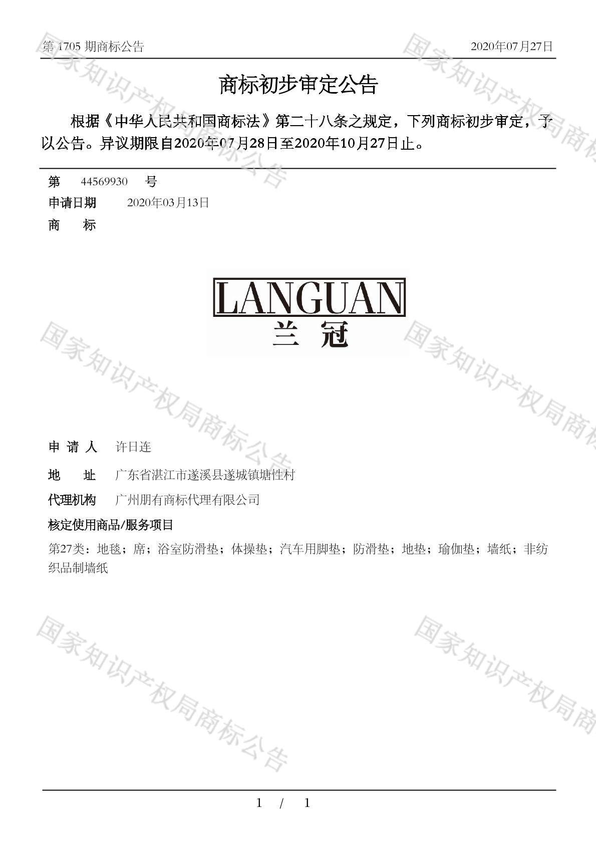 您当前位置:首页商标转让27类商标兰冠