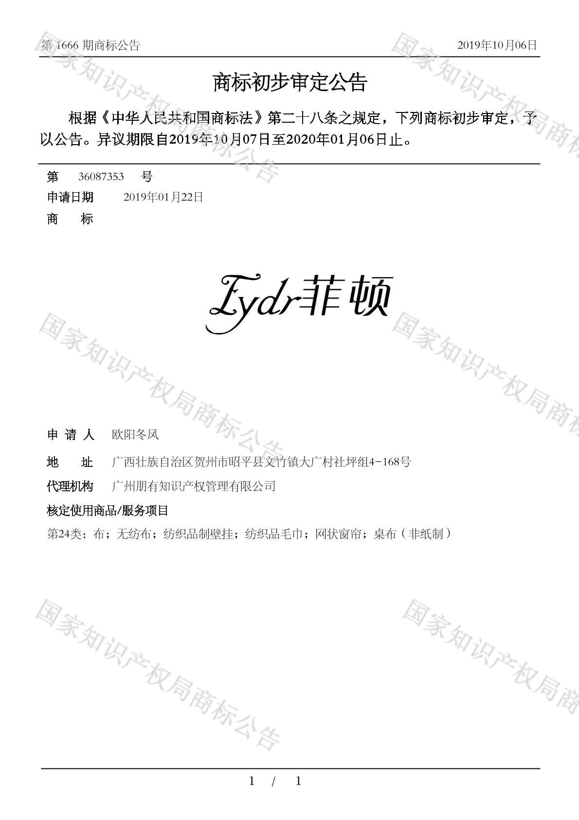 有效期限:2030-01-06 组合类型:中文注册号:36087353