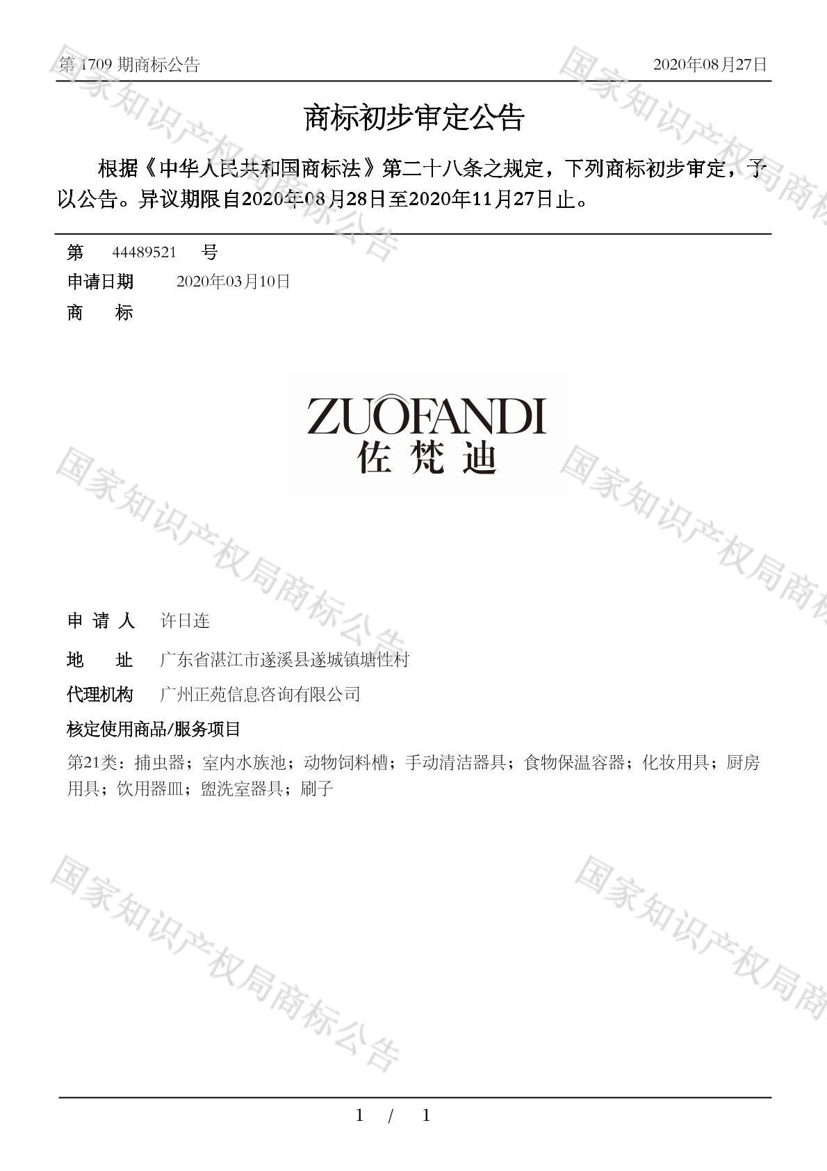 您当前位置:首页商标转让21类商标佐梵迪