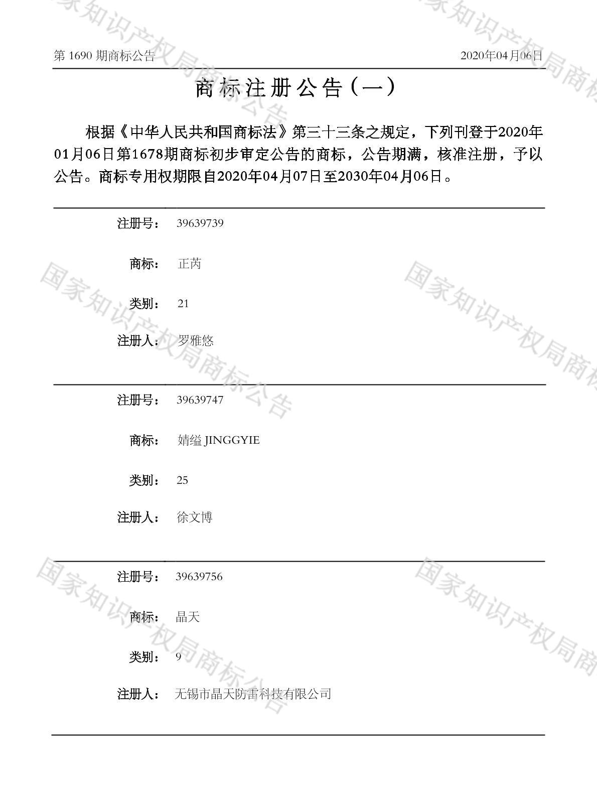 有效期限:2030-04-06 组合类型:中文注册号:39639739
