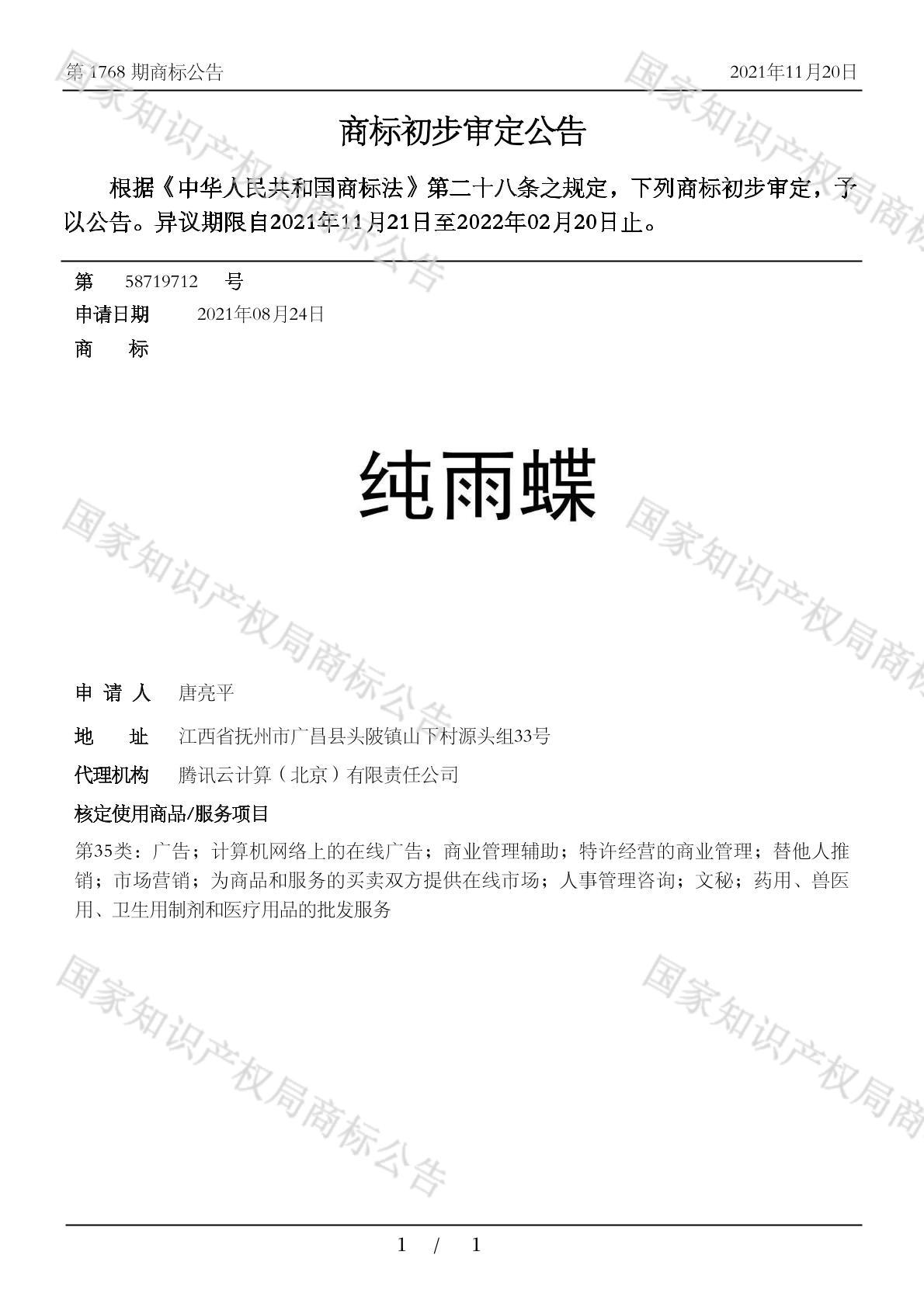 有效期限:2032-02-20 组合类型:中文注册号:58719712