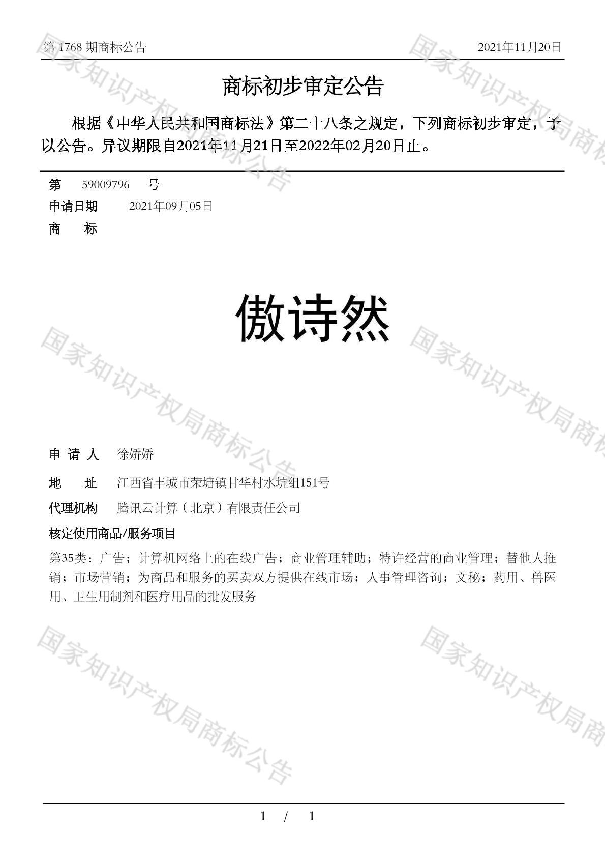 有效期限:2032-02-20 组合类型:中文注册号:59009796