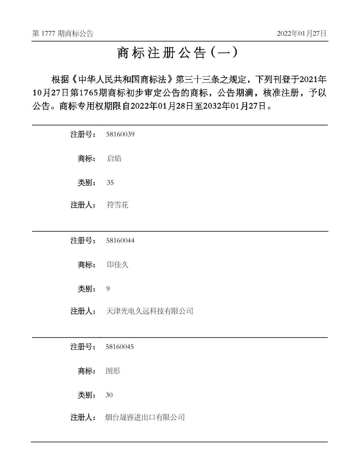 注册公告期号:1777