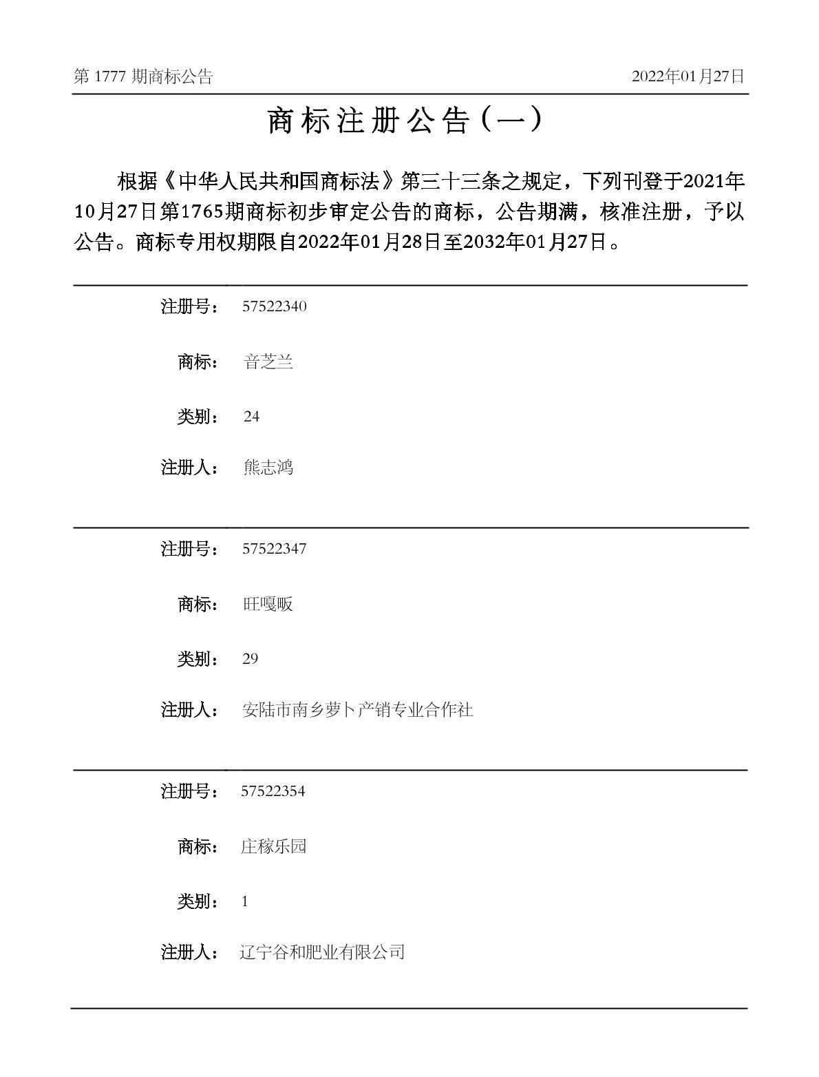注册公告期号:1777