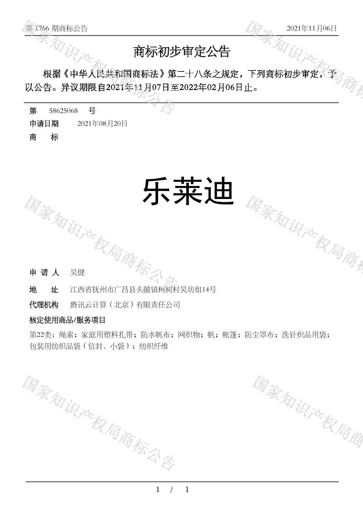有效期限:2032-02-06 组合类型:中文注册号:58625068