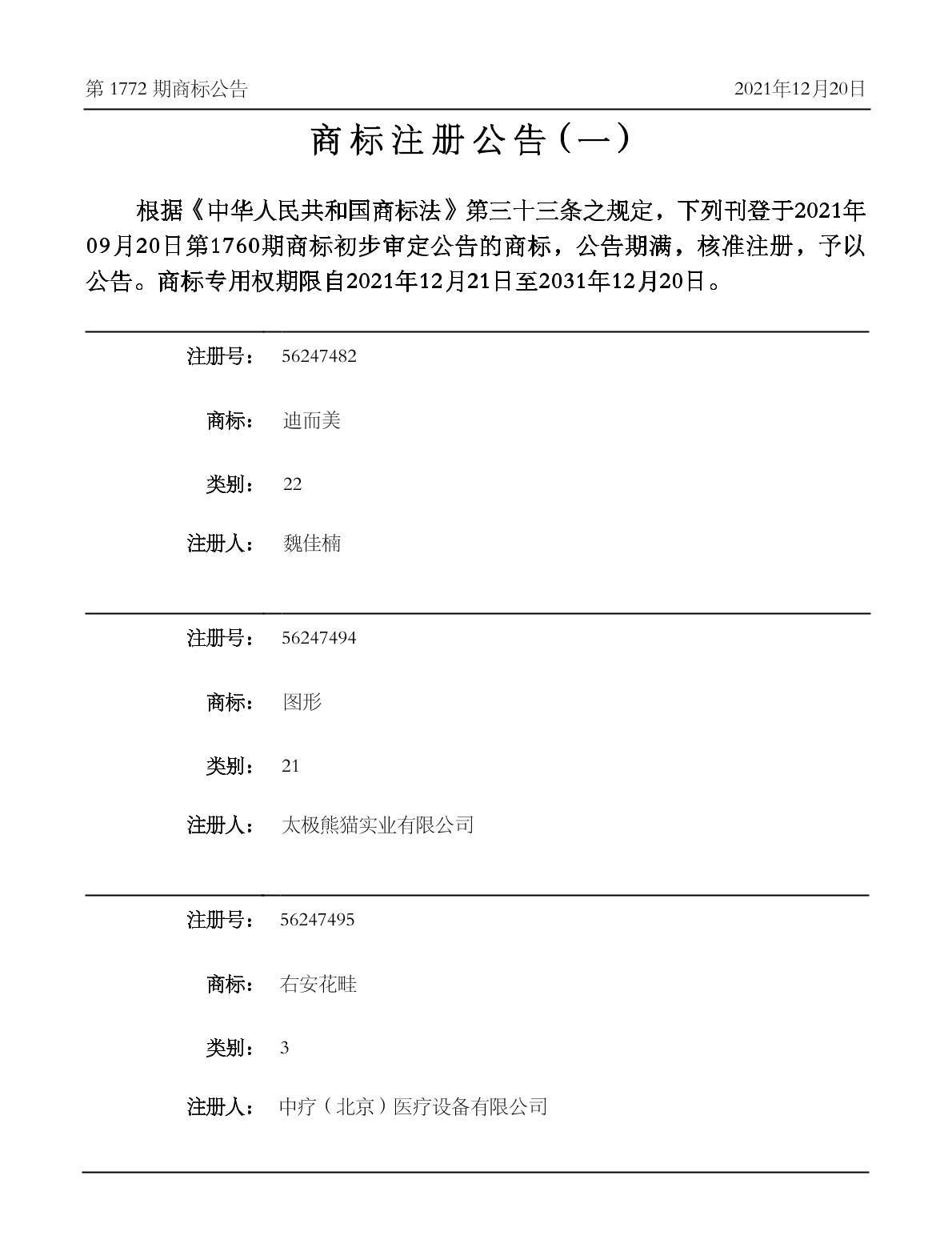 注册公告期号:1772