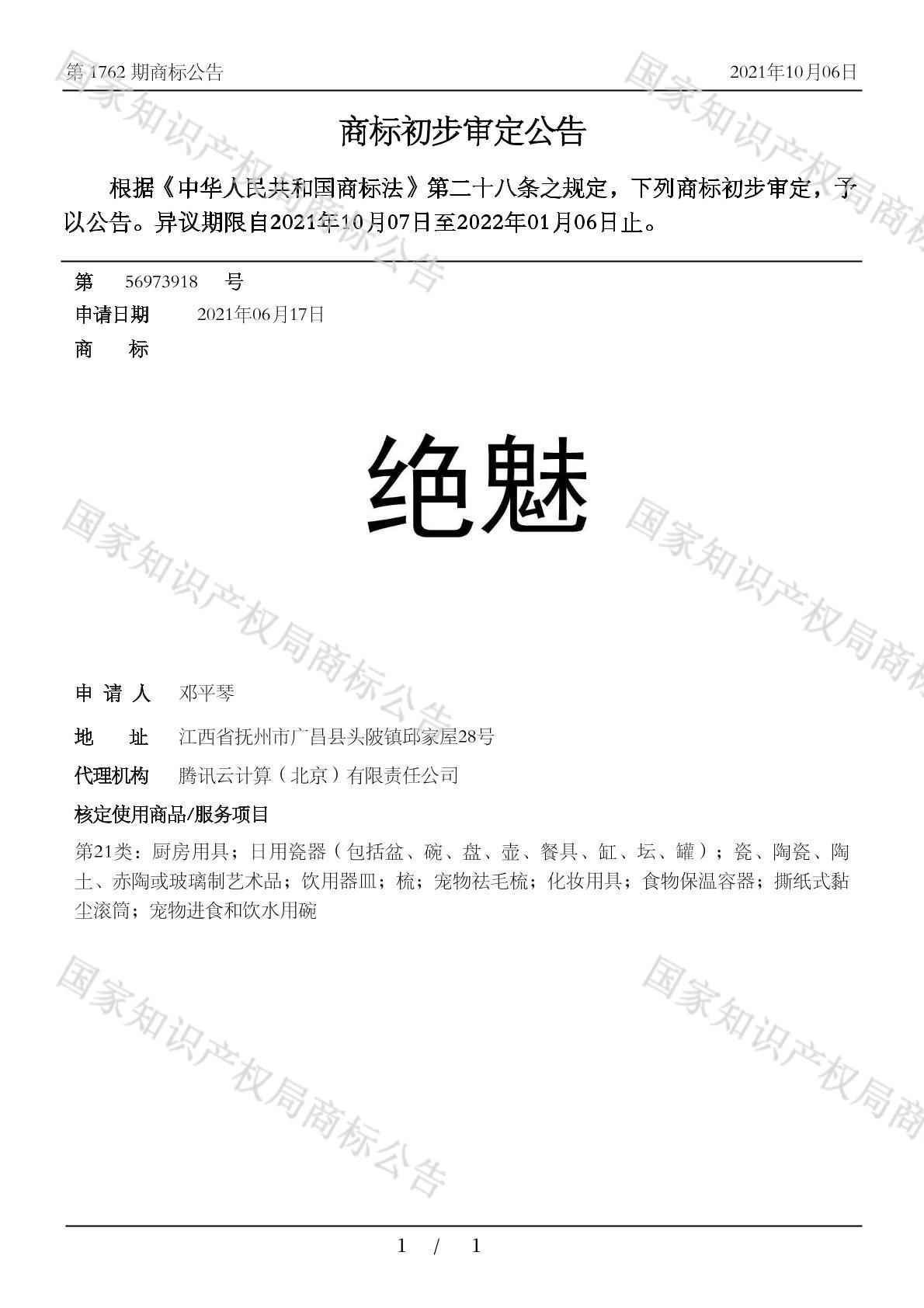 有效期限:2032-01-06 组合类型:中文注册号:56973918