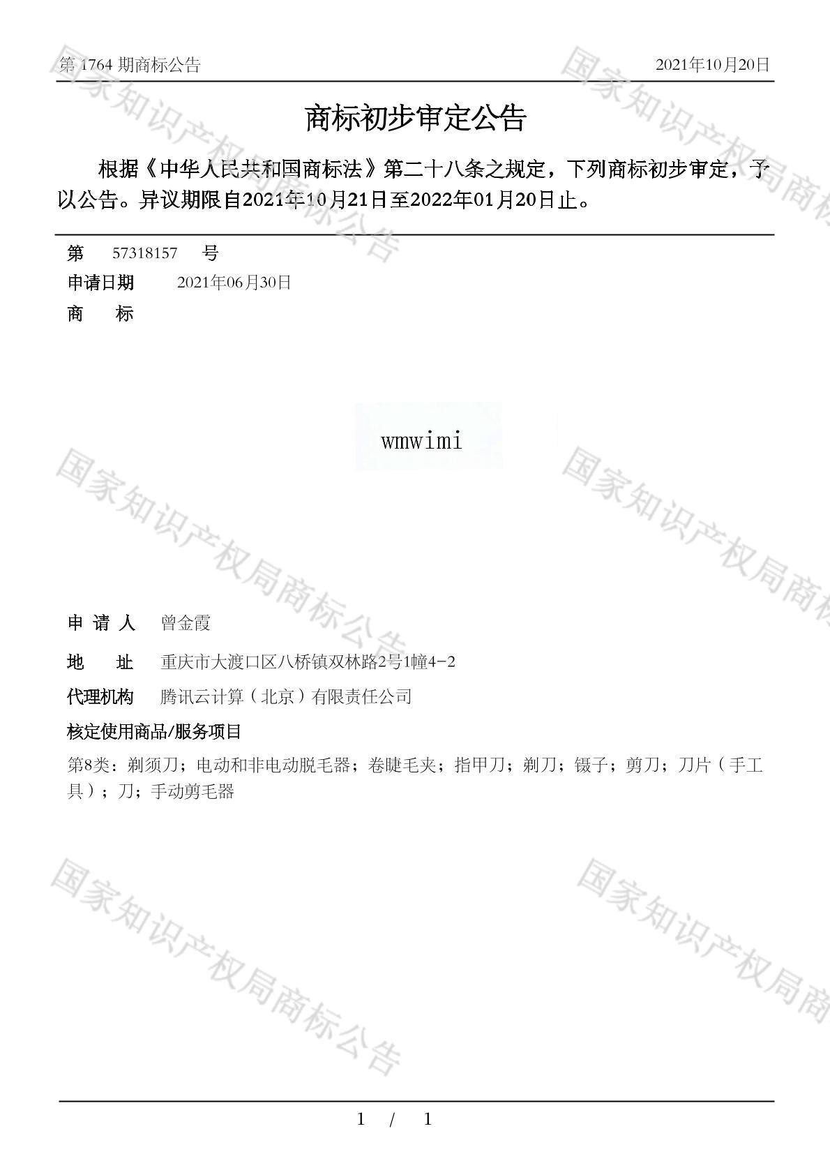 有效期限:2032-01-20 组合类型:中文注册号:57318157