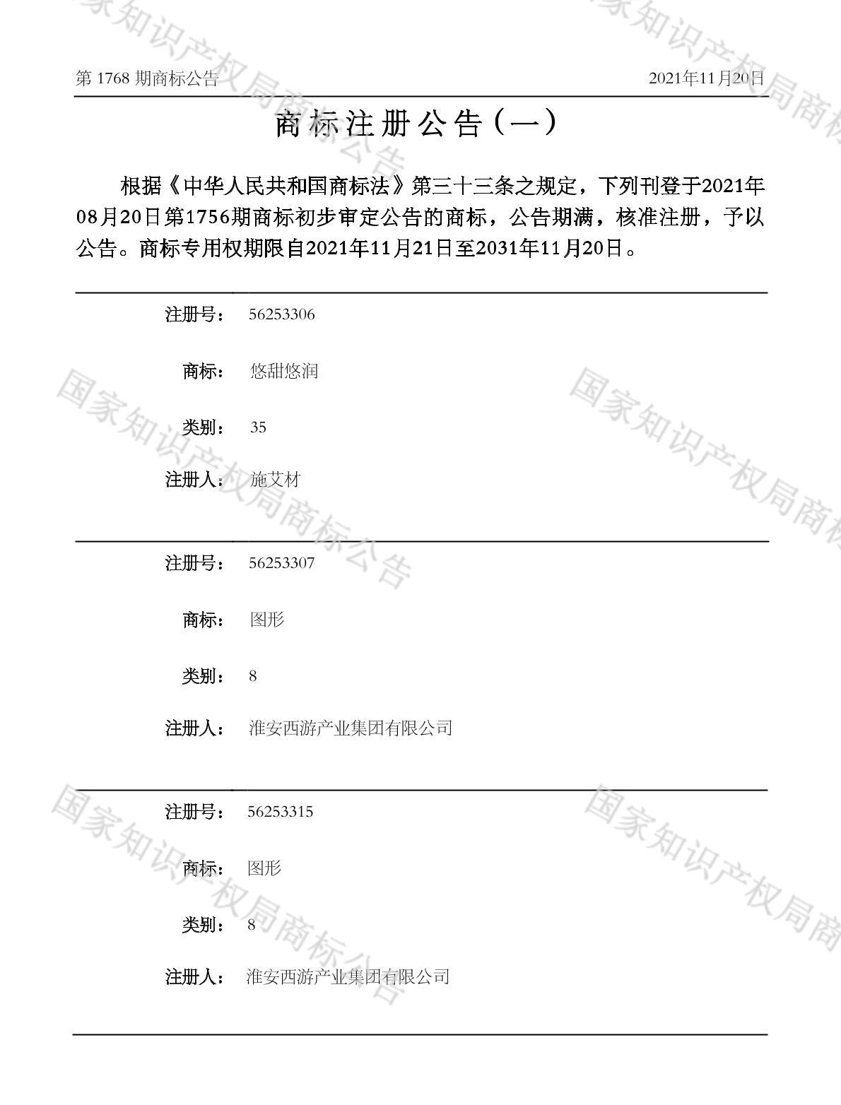 有效期限:2031-11-20 组合类型:中文注册号:56253306