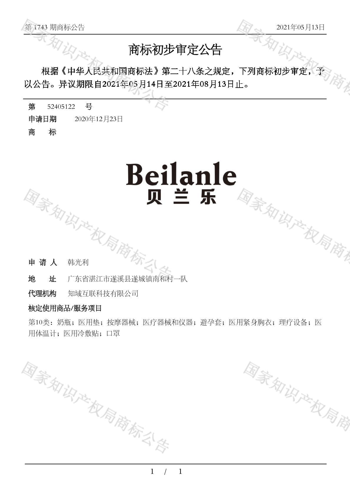有效期限:2031-08-13 组合类型:中文注册号:52405122