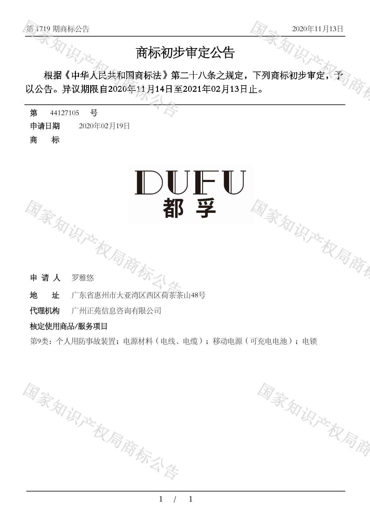 有效期限:2031-02-13 组合类型:中文注册号:44127105