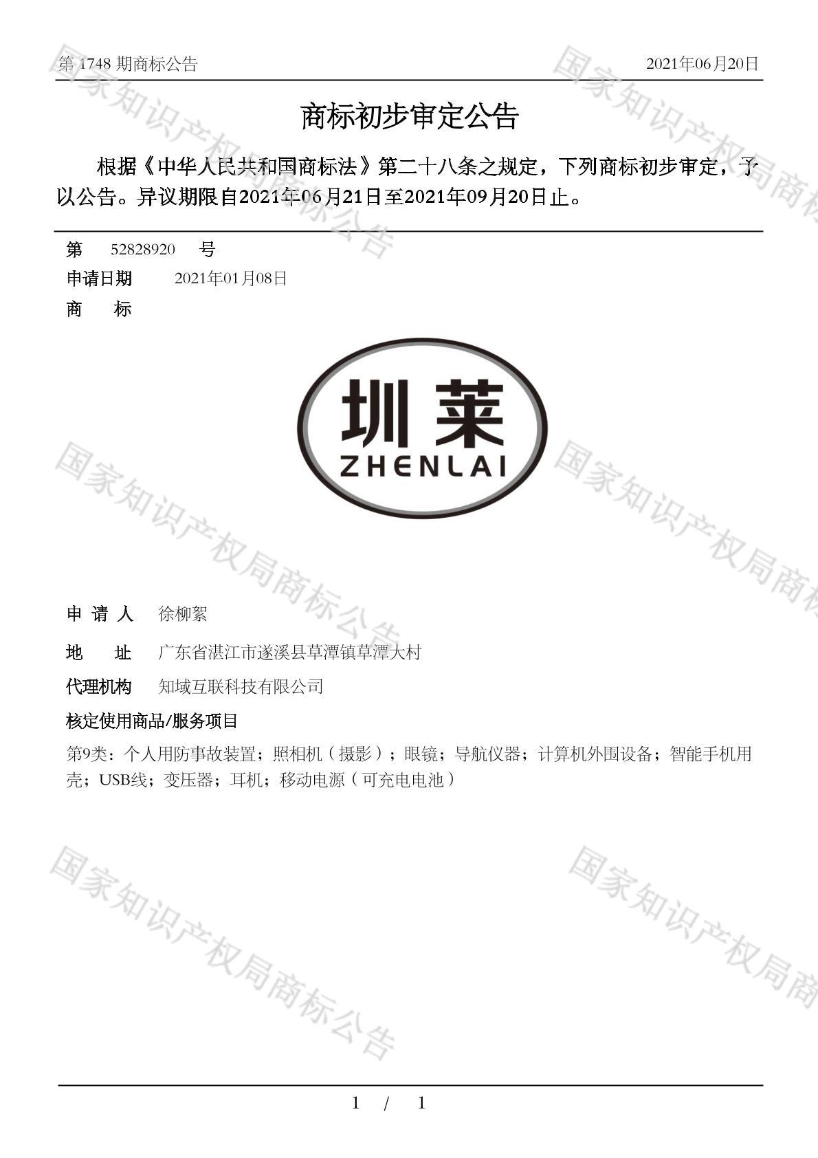 有效期限:2031-09-20 组合类型:中文注册号:52828920