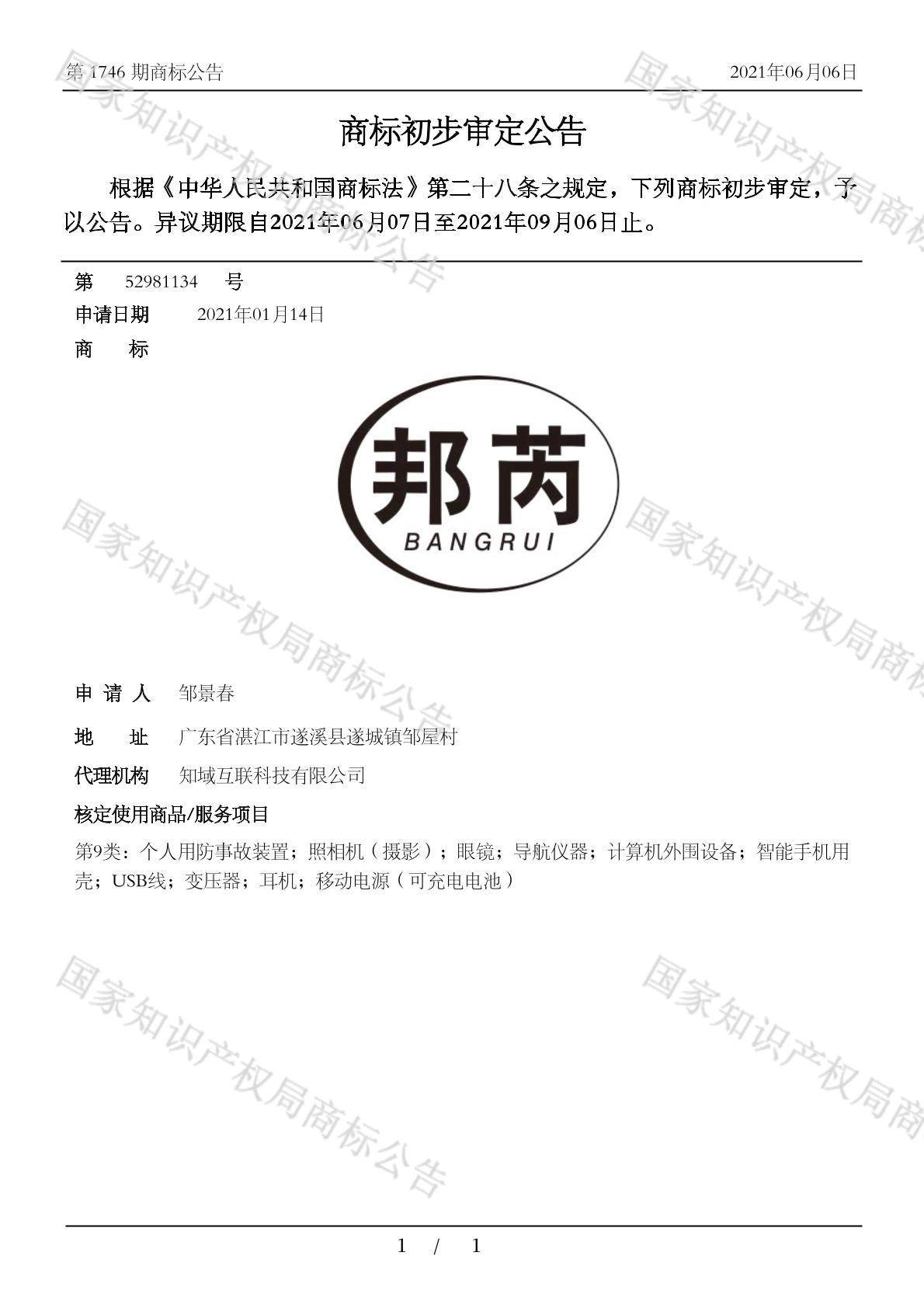 有效期限:2031-09-06 组合类型:中文注册号:52981134