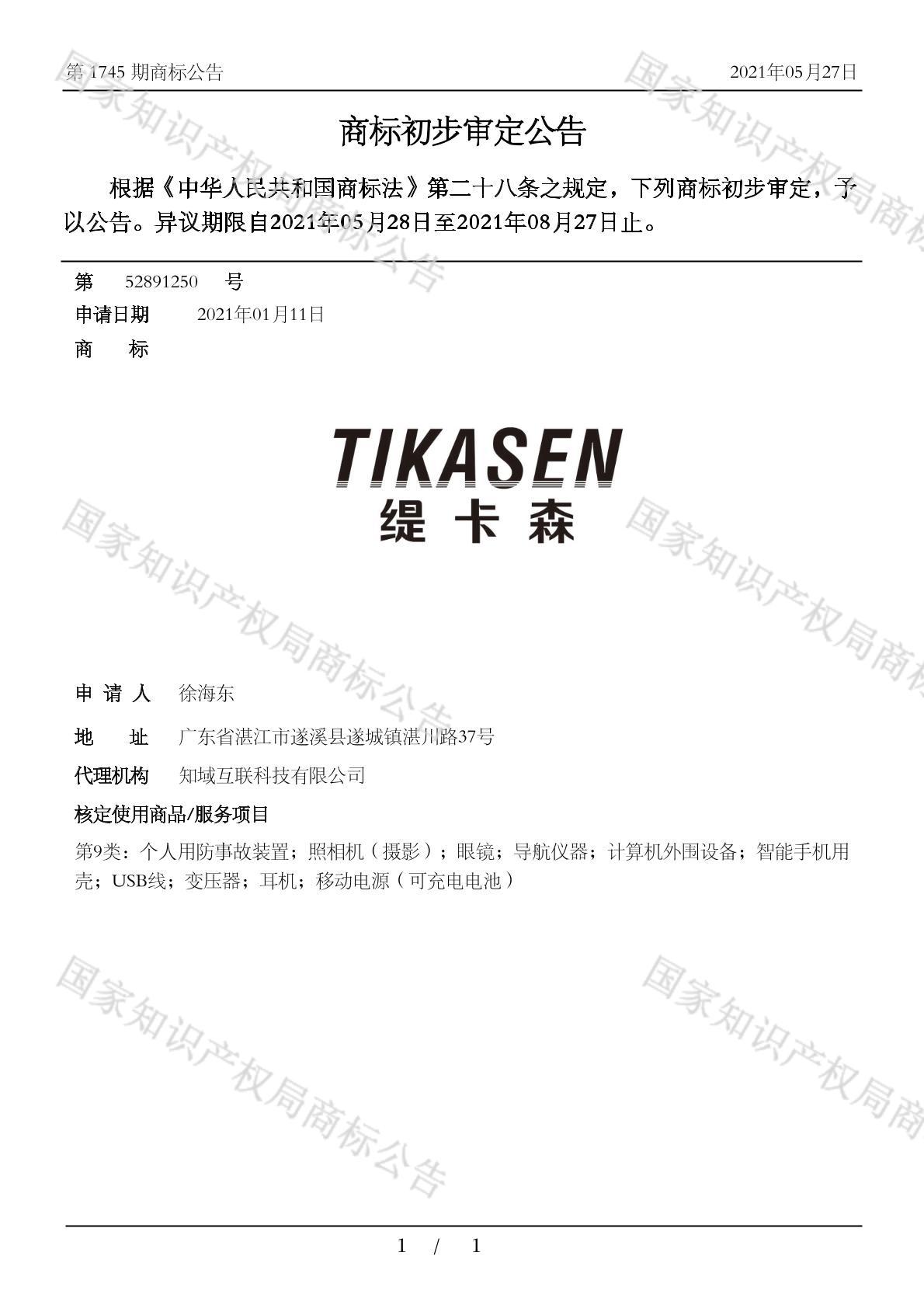 有效期限:2031-08-27 组合类型:中文注册号:52891250