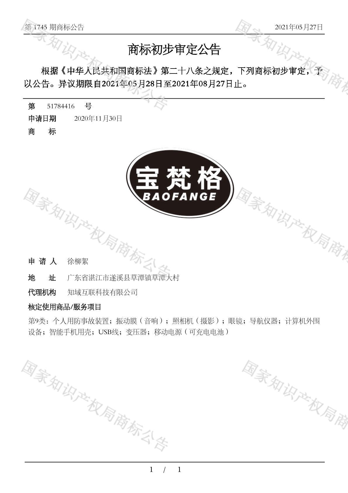 有效期限:2031-08-27 组合类型:中文注册号:51784416