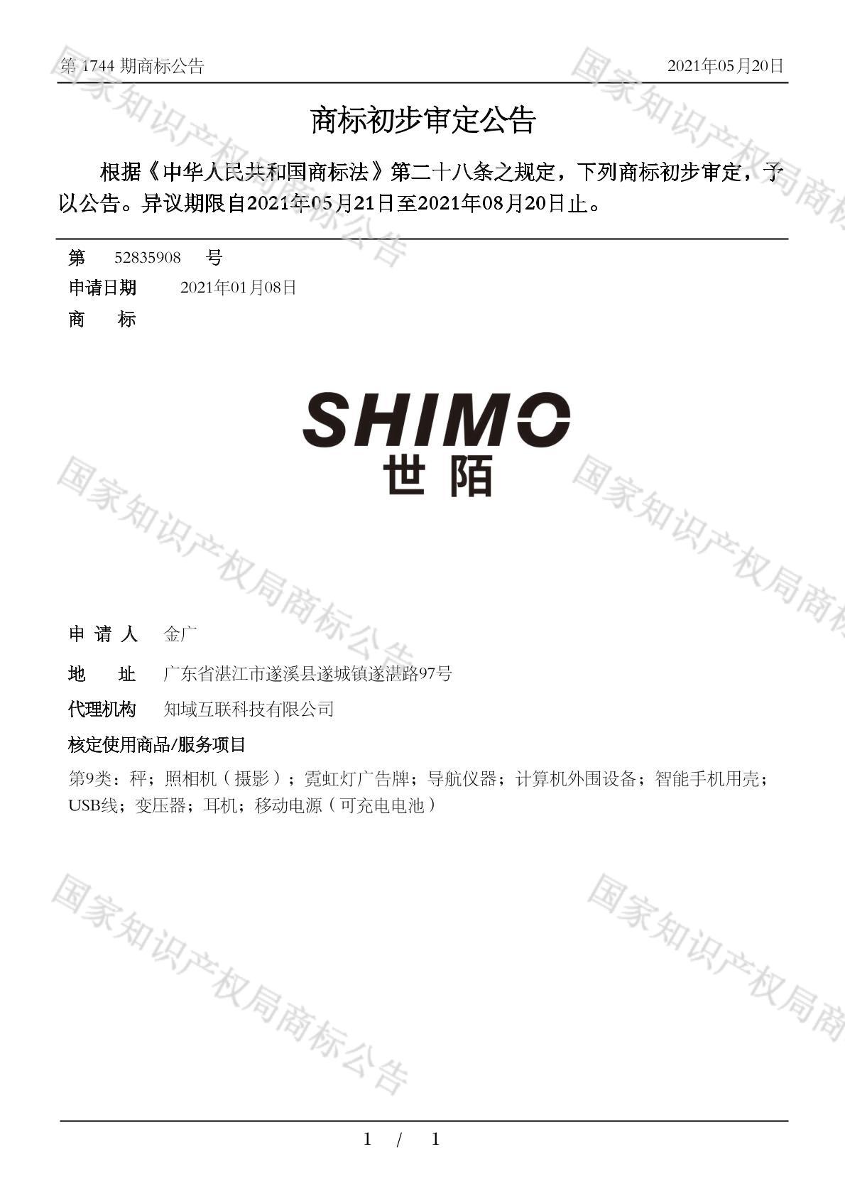 有效期限:2031-08-20 组合类型:中文注册号:52835908