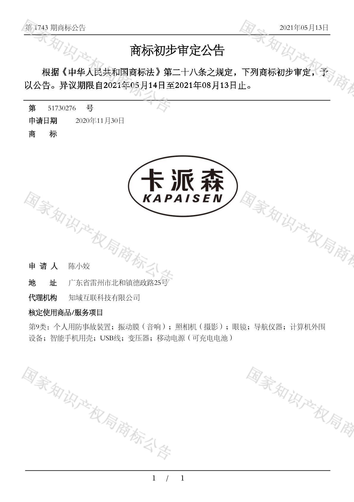 初审公告日期:2021-05-13