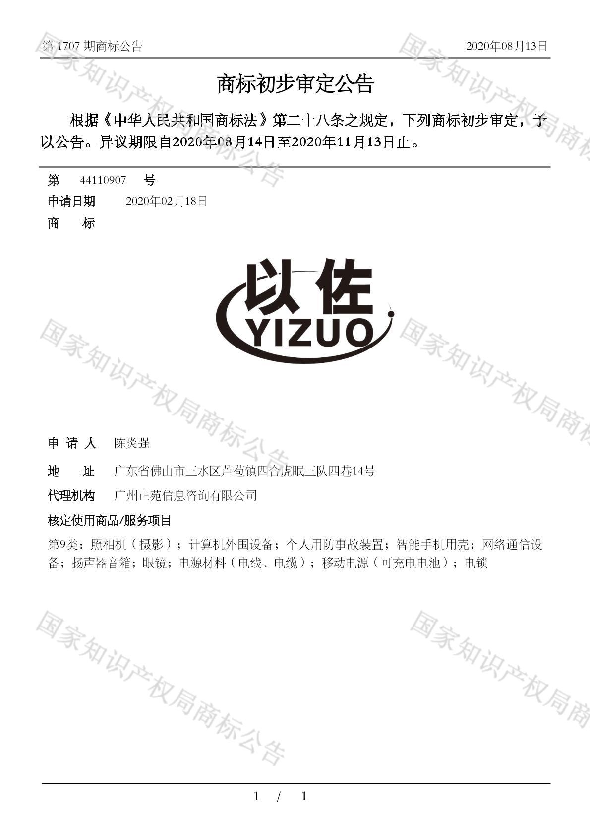 有效期限:2030-11-13 组合类型:中文注册号:44110907