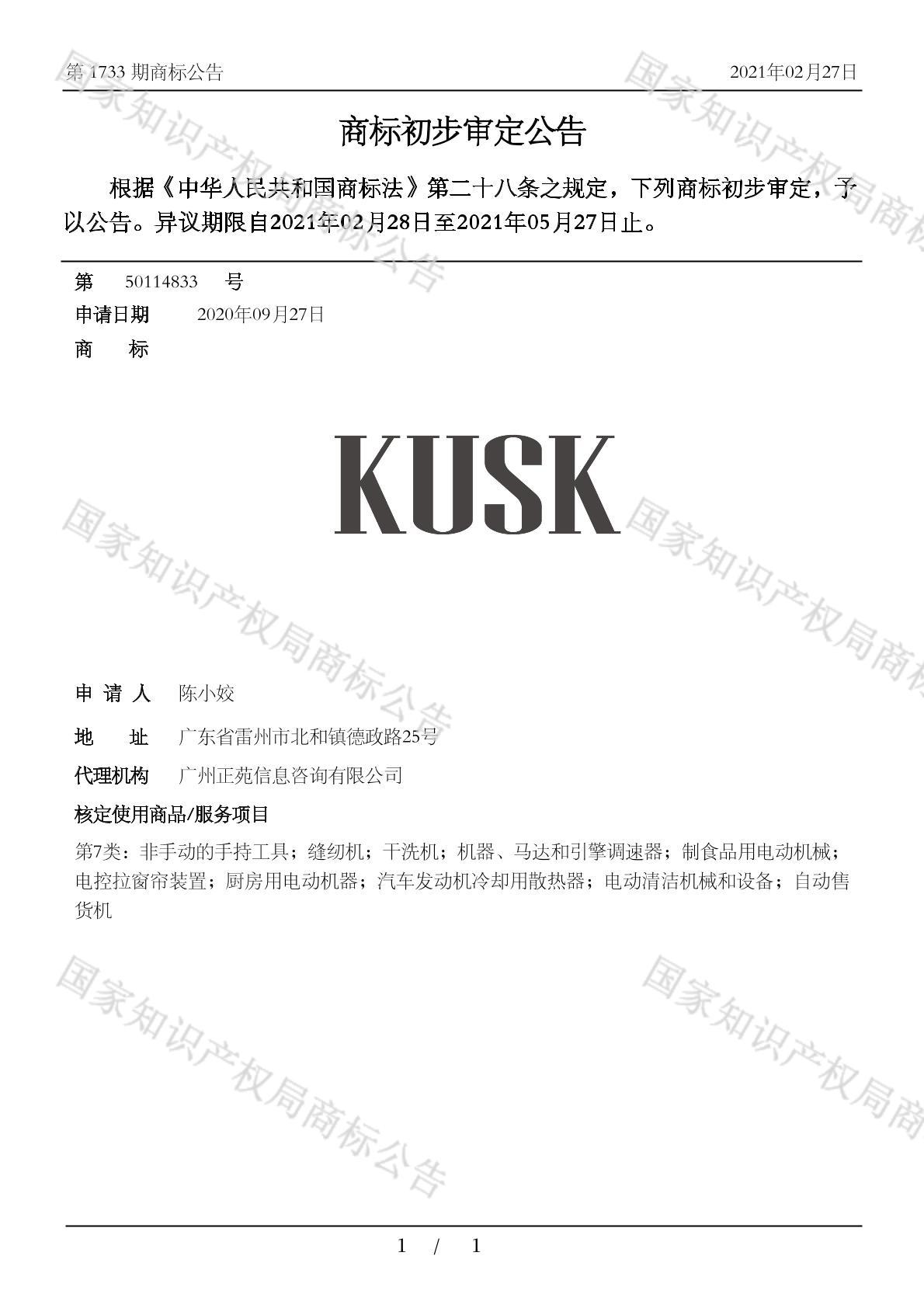有效期限:2031-05-27 组合类型:中文注册号:50114833