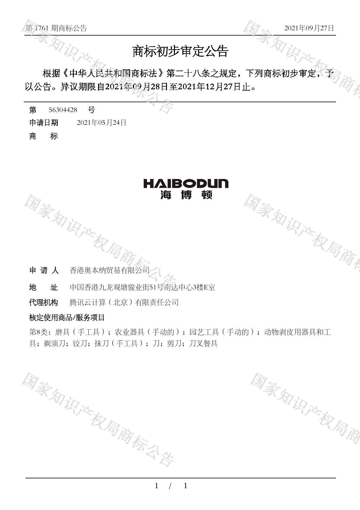 有效期限:2031-12-27 组合类型:中文注册号:56304428
